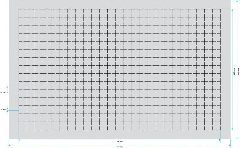 - Vorgestanztes Raster mit 20 mm x 20 mm Größe.