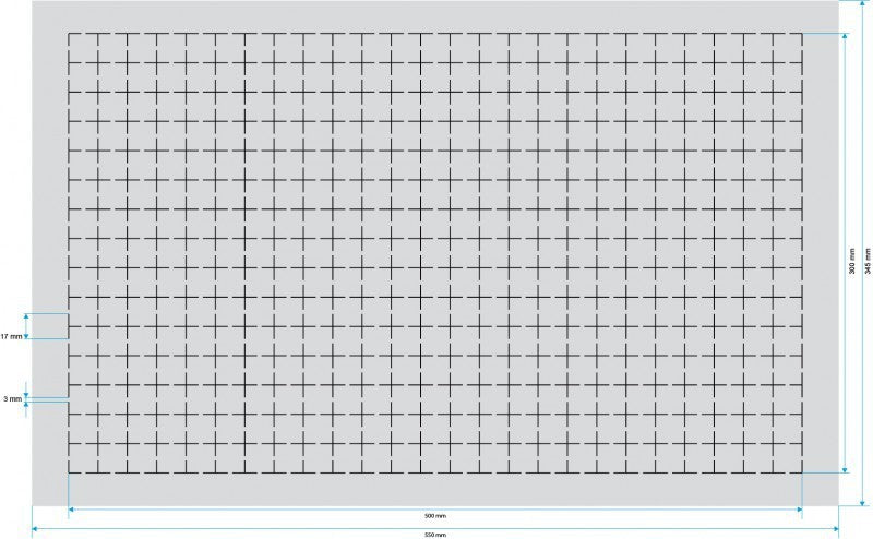 - Vorgestanztes Raster mit 20 mm x 20 mm Größe.