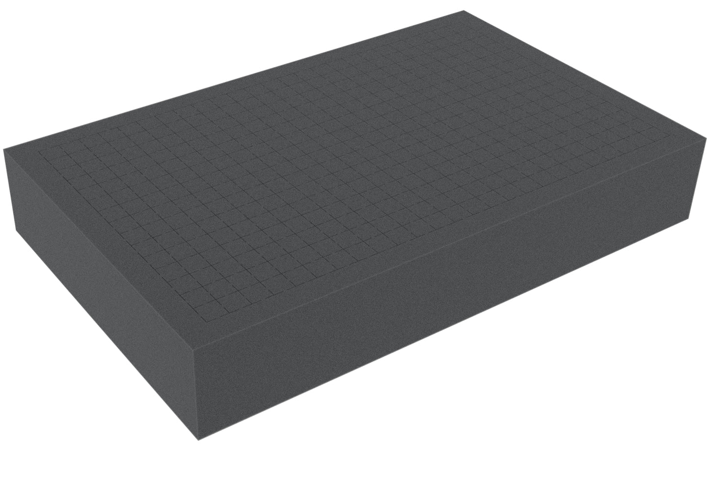 Dieses 90 mm hohe Double-Size Insert verfügt über ein vorgeschnittenes Raster von 20 mm x 20 mm. Es eignet sich hervorragend für empfindliche Transportgüter wie große Tabletop-Miniaturen, technische Geräte und Werkzeug.