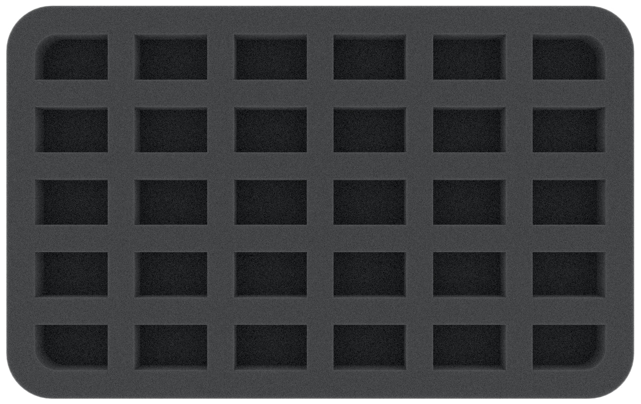- Jedes der 30 Fächer ist 32 mm lang x 20 mm breit x 20 mm tief.