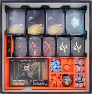 Hochwertige Aufbewahrungslösungen für Dune: Imperium sorgen dafür, dass Karten, Marker und Spielmaterialien sicher organisiert bleiben und das Spiel jederzeit schnell aufgebaut werden kann – zu Hause oder unterwegs.