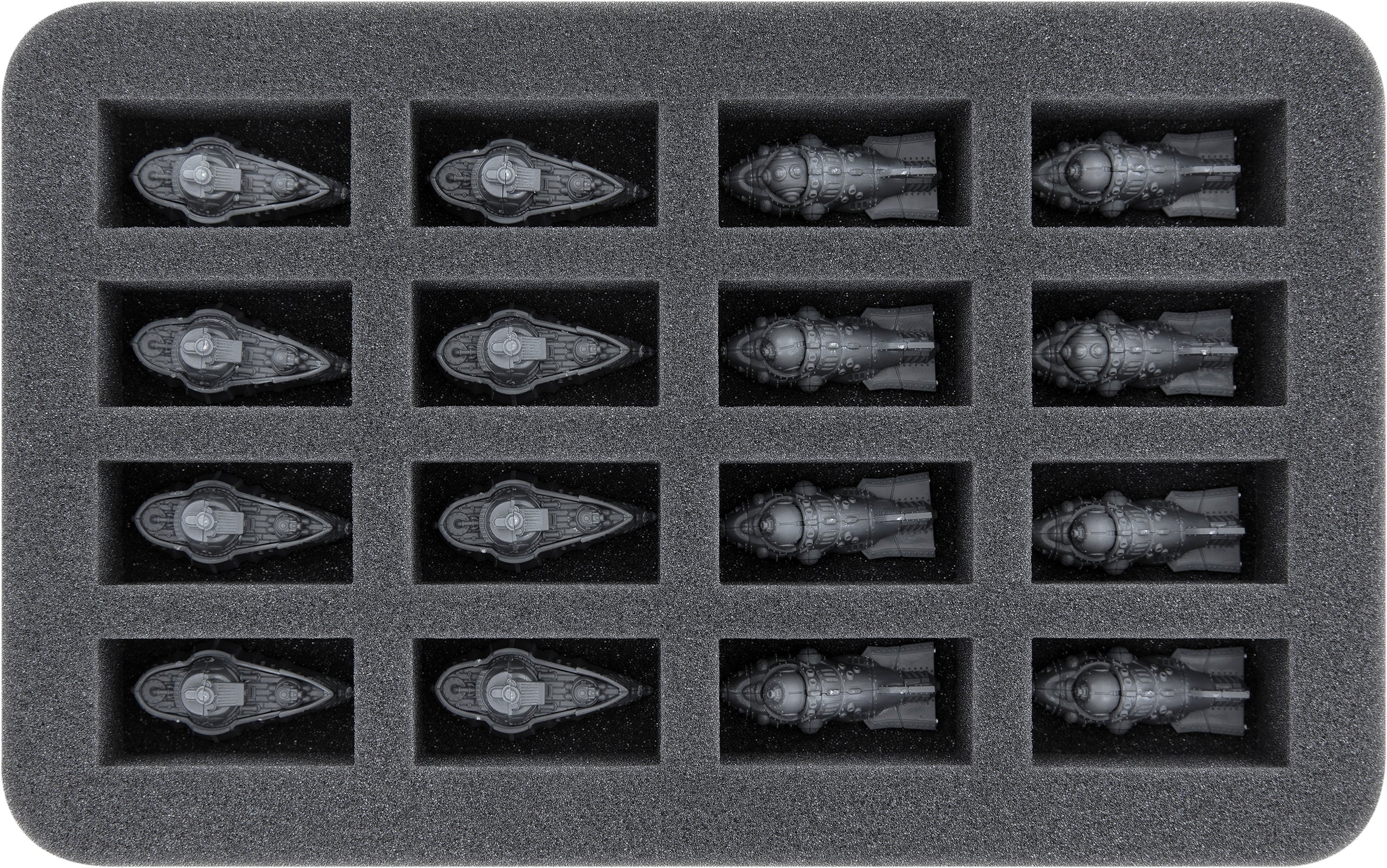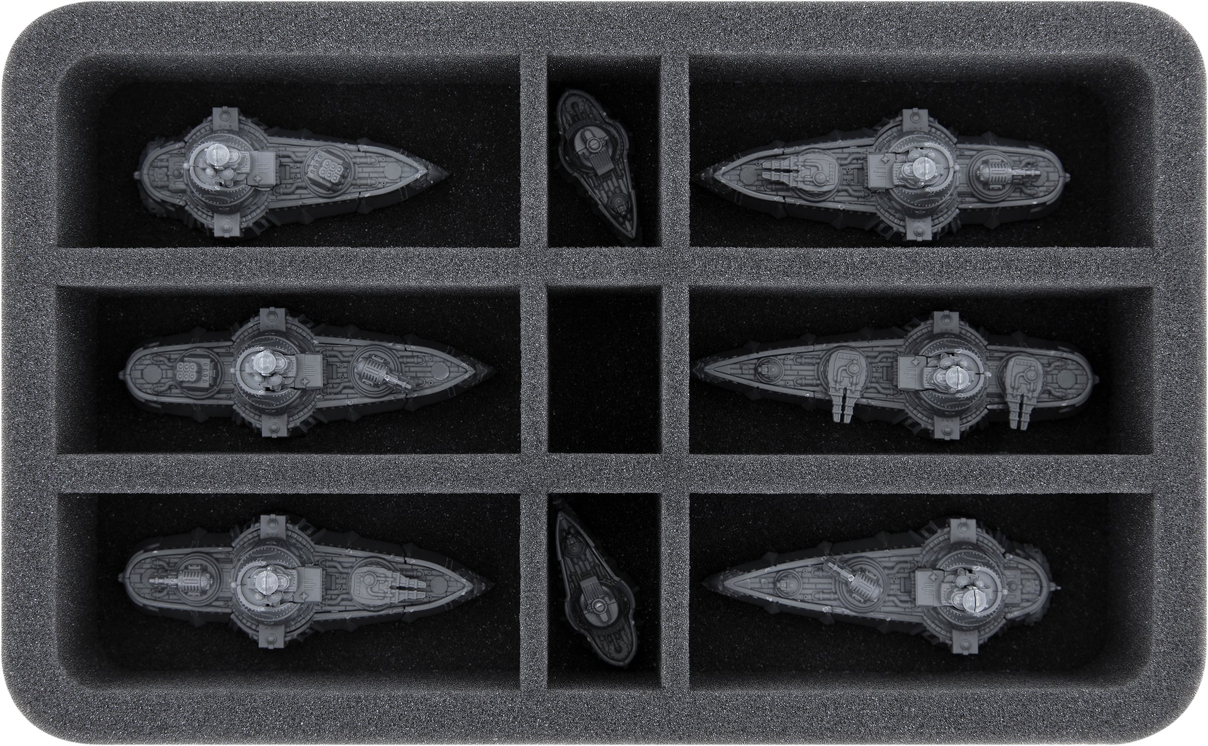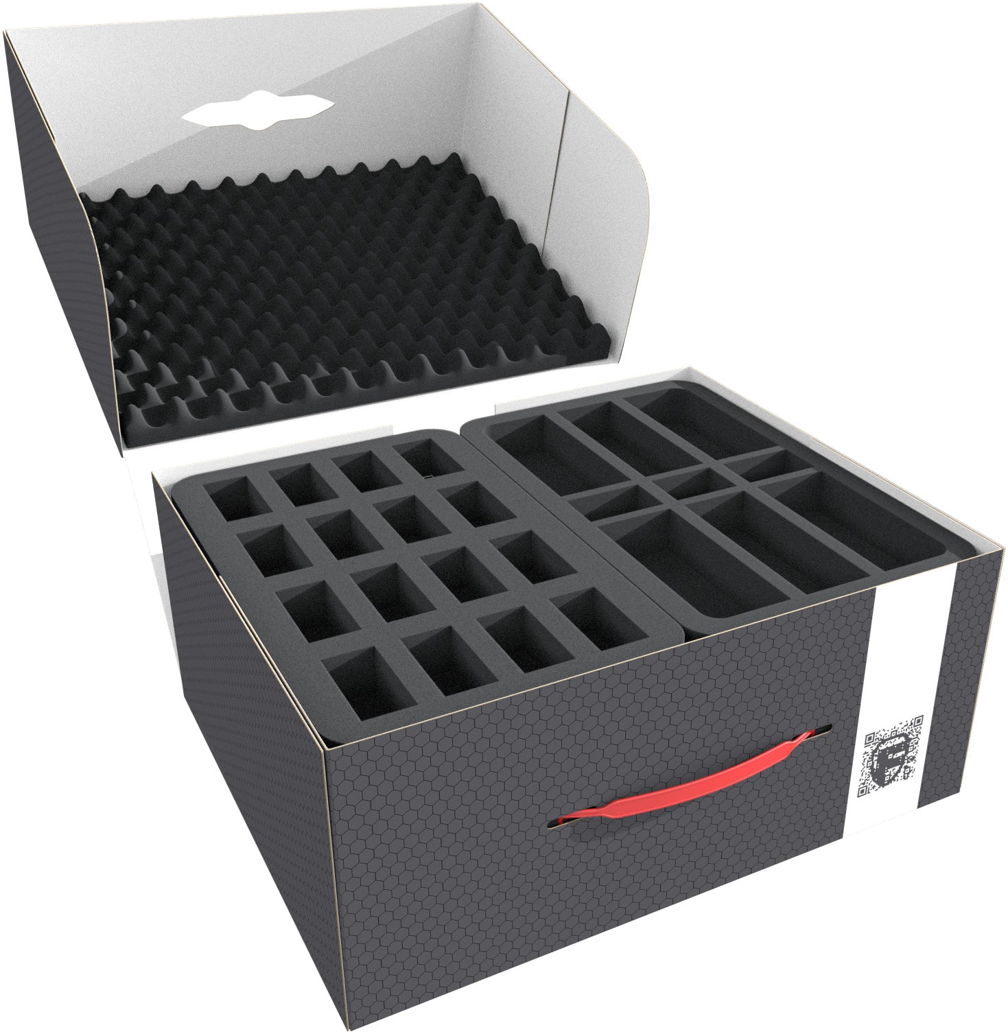 Damit deiner Flotte auf dem Weg zum nächsten Einsatz nichts zustößt, bekommst du hier die passende Lagerbox FSLB150 inklusive Feldherr Schaumstoffeinlagen zum Schutz deiner Miniaturen.