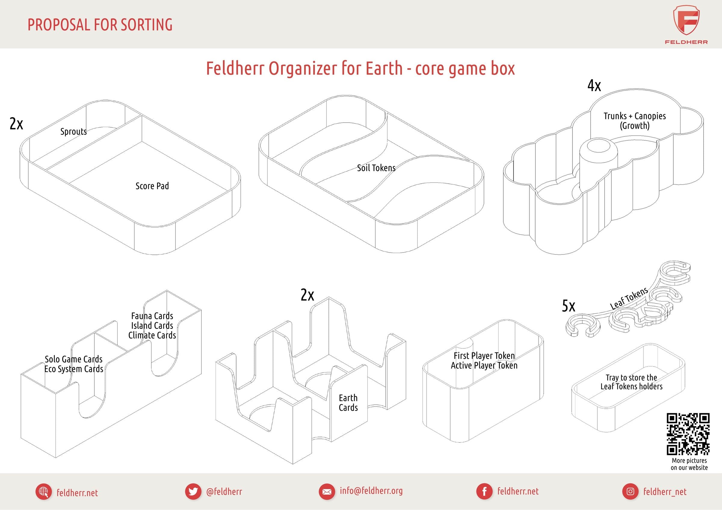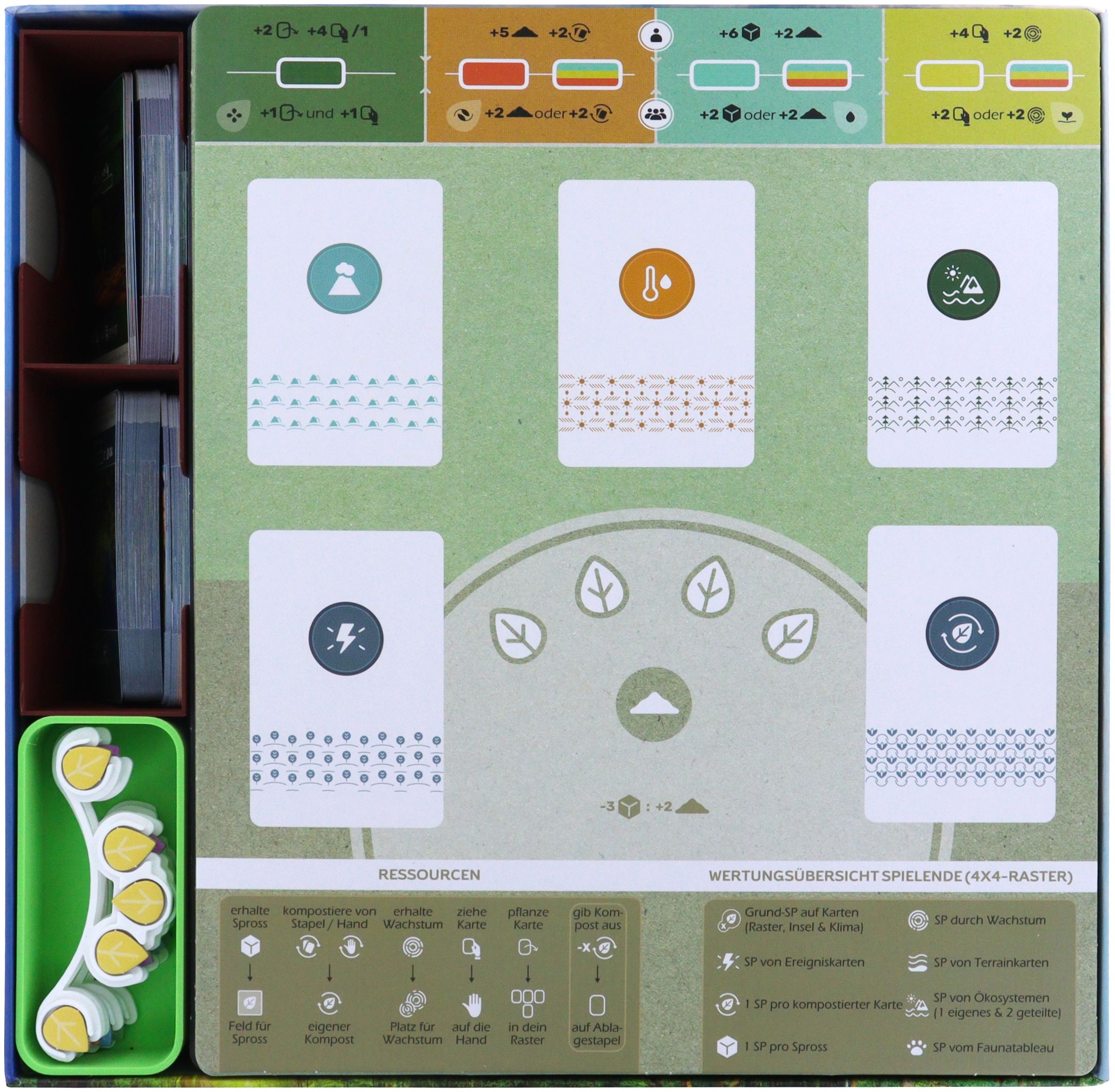 - Der Organizer passt in die originale „Erde” Brettspielbox von Skellig Games.