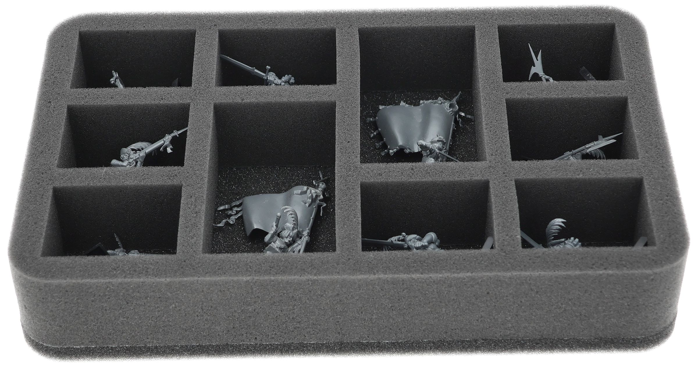 Auf dieser Feldherr Schaumstoffeinlage hast du Platz für bis zu 10 Miniaturen deiner Armee. Das Insert eignet sich zum Beispiel besonders gut zum Aufbewahren der Schützen der Staatstruppen, Imperiale Staatstruppen oder Imperiale Bihandkämpfer und Modellen mit ähnlichen Abmessungen.