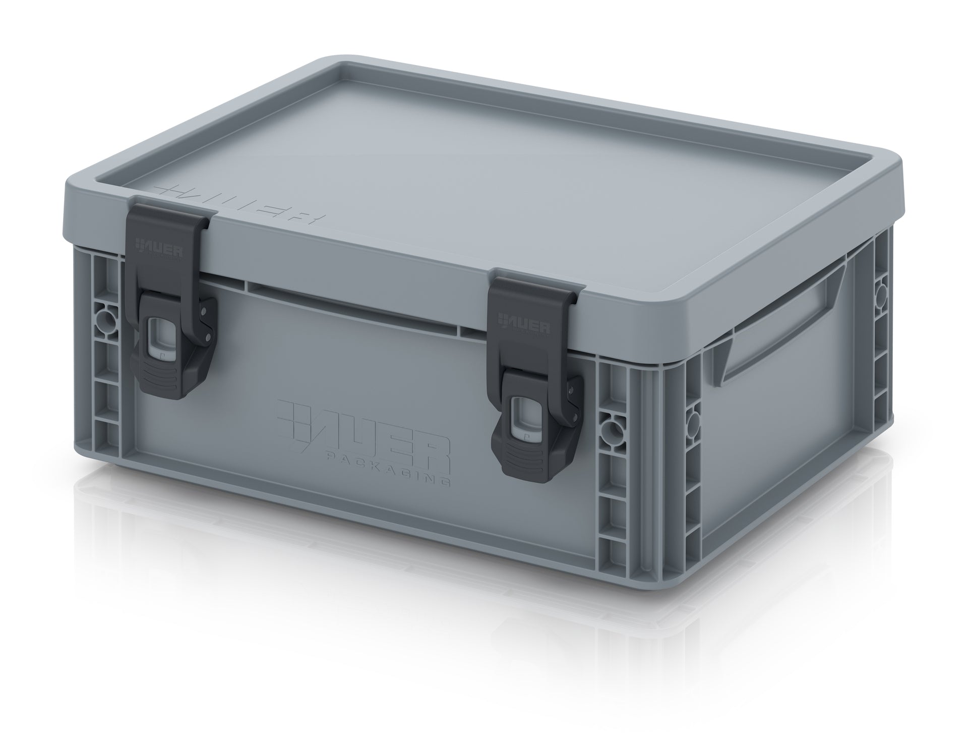 Der Eurobehälter mit Scharnierdeckel von AUER Packaging lässt sich aufgrund des einfach zu bedienenden Scharniersystems im Handumdrehen verschließen. Um den Eurobehälter staubdicht und spritzwassergeschützt zu verschließen, werden sie mit dem Scharnierdeckel Pro ausgestattet. Er verfügt über eine integrierte Gummidichtung, die zusammen mit dem Spannhebelverschluss dafür sorgt, dass der Inhalt vor den allermeisten äußeren Einflüssen bestens geschützt ist.