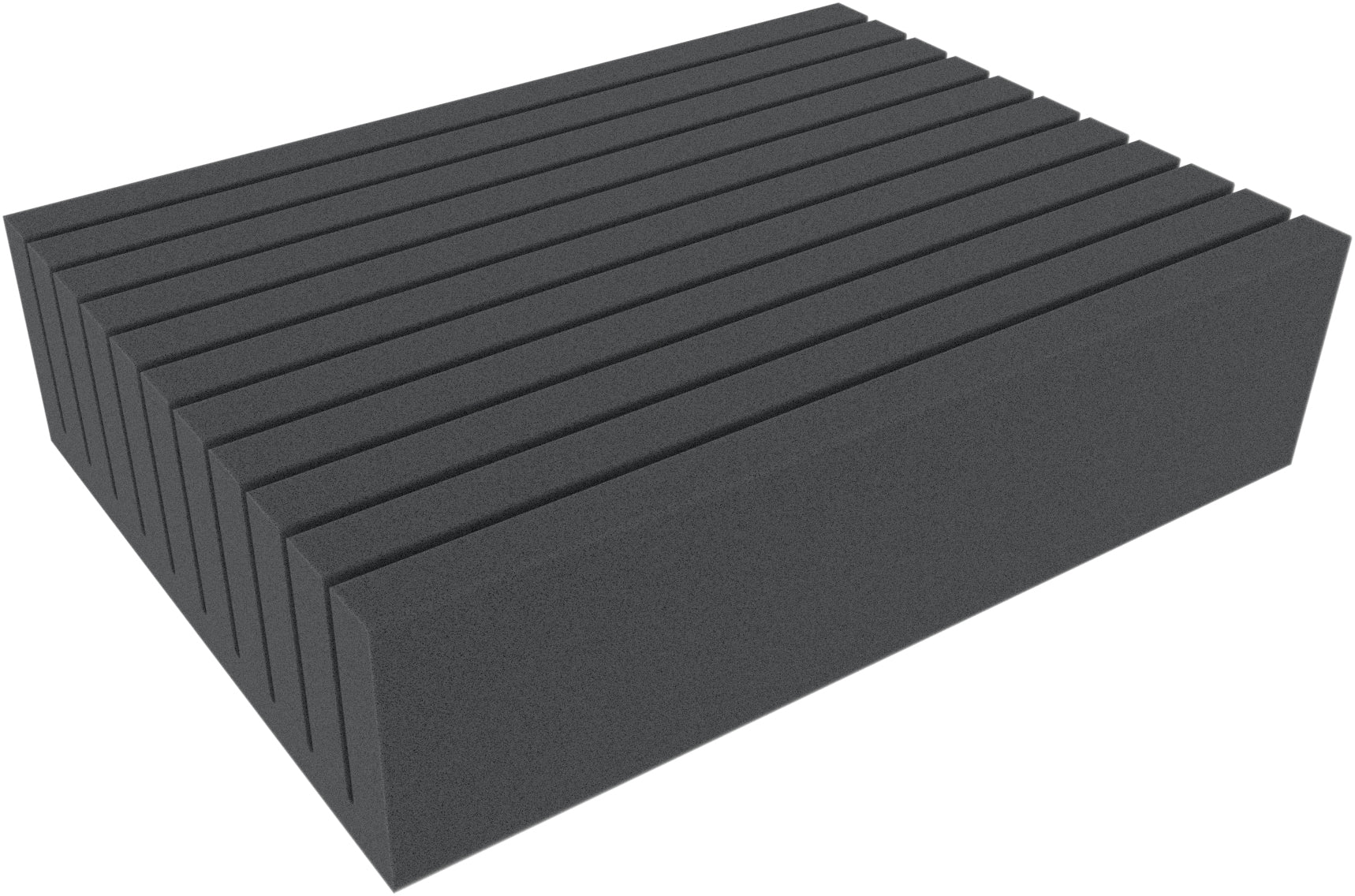 Die Feldherr Schaumstoffeinlage verfügt über 10 lange Schlitze. Diese langen "Fächer" eignen sich besonders für schmales Transportgut. Der offenzellige Weichschaumstoff passt sich auch an unregelmäßige Formen an. Als Pendelverpackung für den sicheren Transport Ihrer Bauteile ist diese Einlage die erste Wahl.
