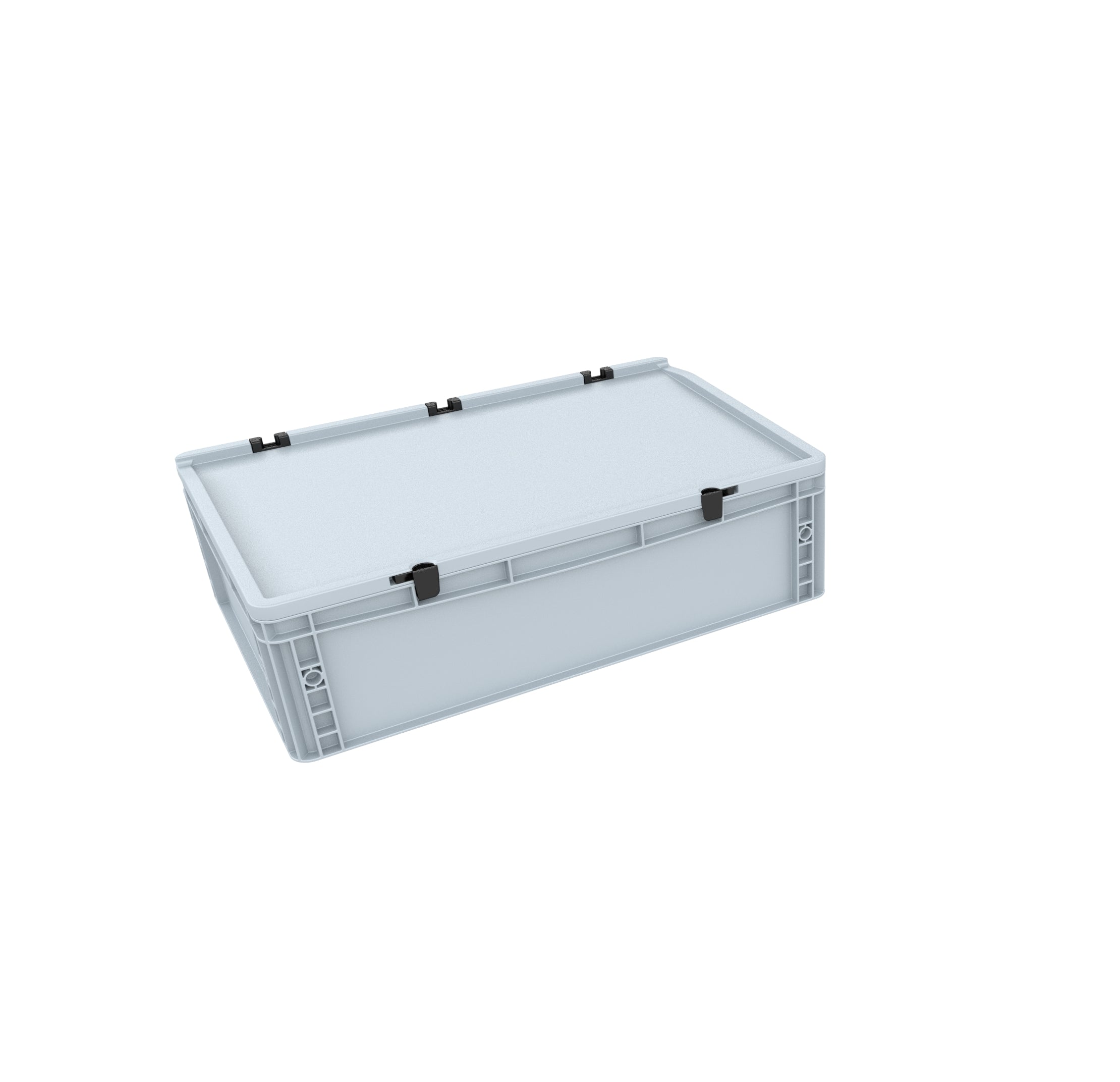 Sicher geschlossen Der Eurobehälter mit Scharnierdeckel von AUER Packaging lässt sich aufgrund des einfach zu bedienenden Scharniersystems im Handumdrehen verschließen. Ihre Ware ist somit optimal vor Transportschäden und Verschmutzungen geschützt.