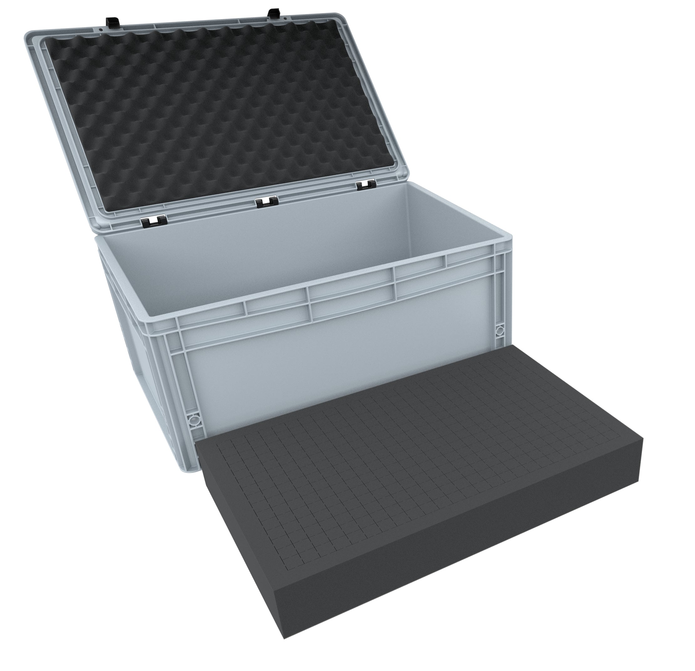 ED 64/27 HG Eurobehälter / Euro Box mit Scharnierdeckel 600 x 400 x 285 mm inklusive Rasterschaumstoff