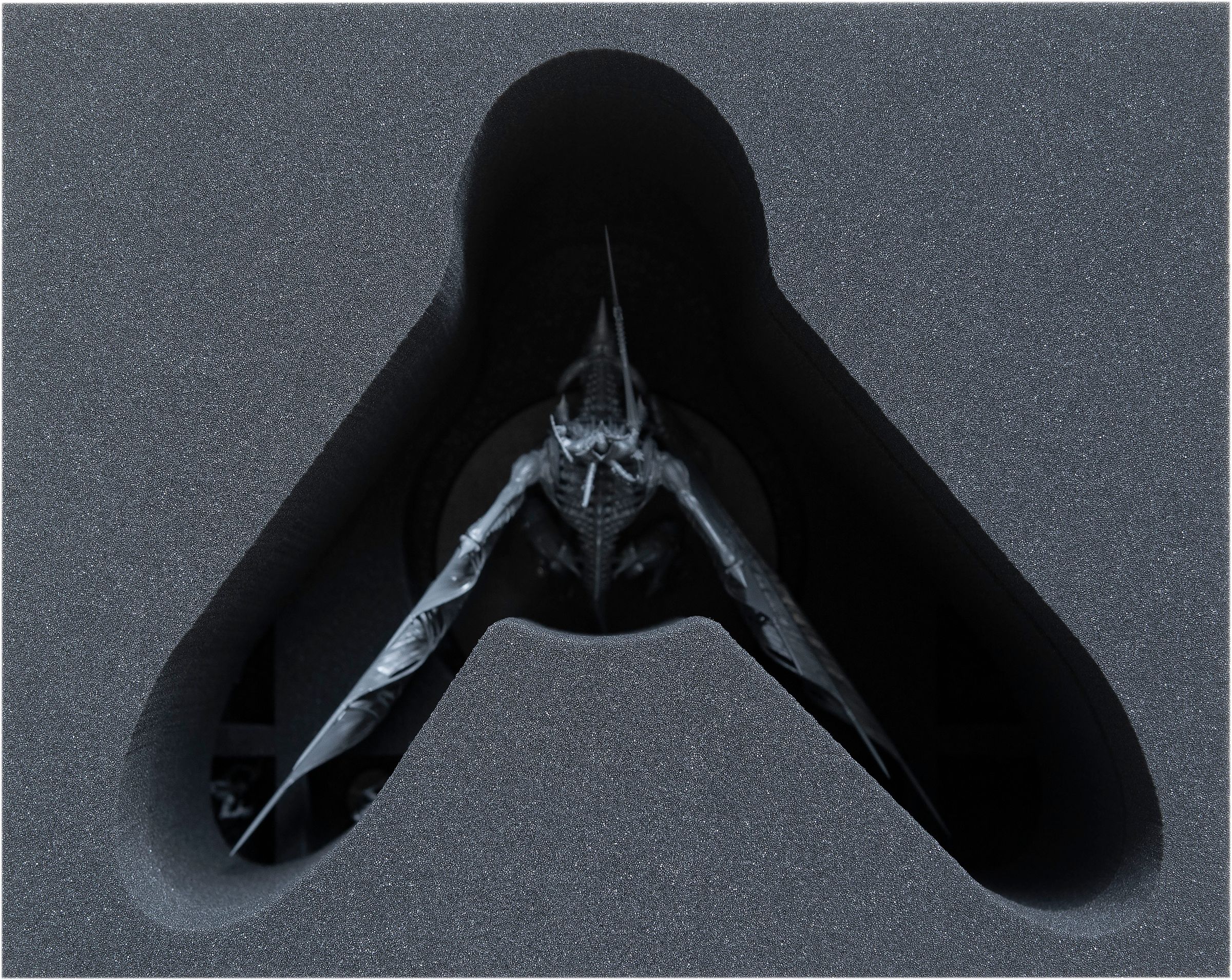 Damit auch der restliche Teil der Figur sicher in Schaumstoff gepackt ist, kommen die beiden anderen Einlagen obenauf. Diese sind mit einer miniaturengenau zugeschnittenen Aussparung versehen. Dadurch sind die empfindlichen Flügel und alle anderen filigranen Details optimal vor Beschädigungen geschützt. Wenn die Miniatur nach Stunden intensiver Arbeit schließlich bemalt ist, kannst du dich (zumindest bis zur nächsten Schlacht) entspannen, denn die Farben sind hier ebenfalls sicher vor Abrieb und Kratzern.