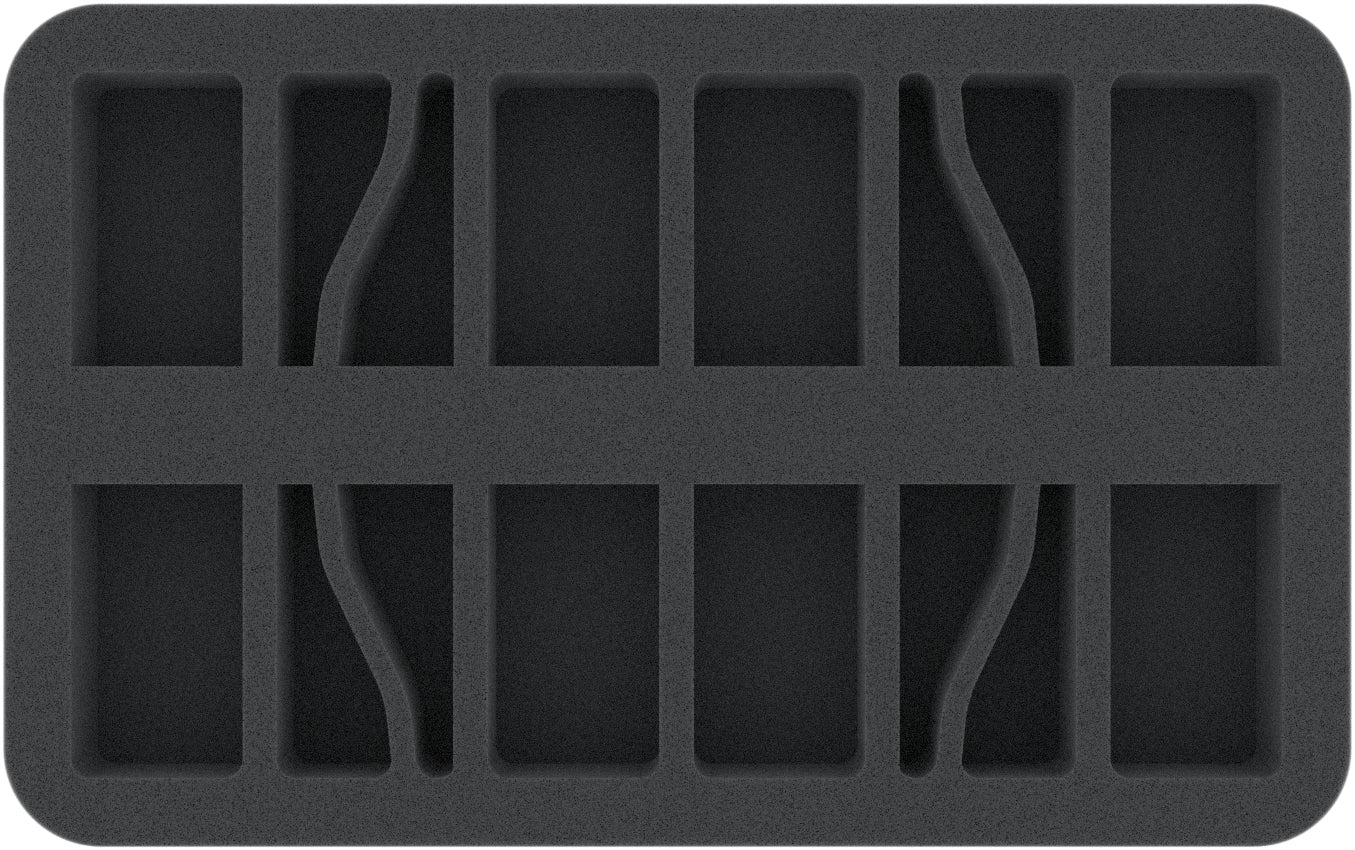 Diese Schaumstoffeinlage verfügt über 16 Fächer zum sicheren und ordentlichen Aufbewahren von Miniaturen und Brettspiel-Zubehör. Der feinporige Schaumstoff bietet deinen Spielmaterialien optimalen Schutz vor Beschädigung – Empfindliche Teile bleiben unversehrt, Oberflächen werden von Kratzern und Abrieb verschont.