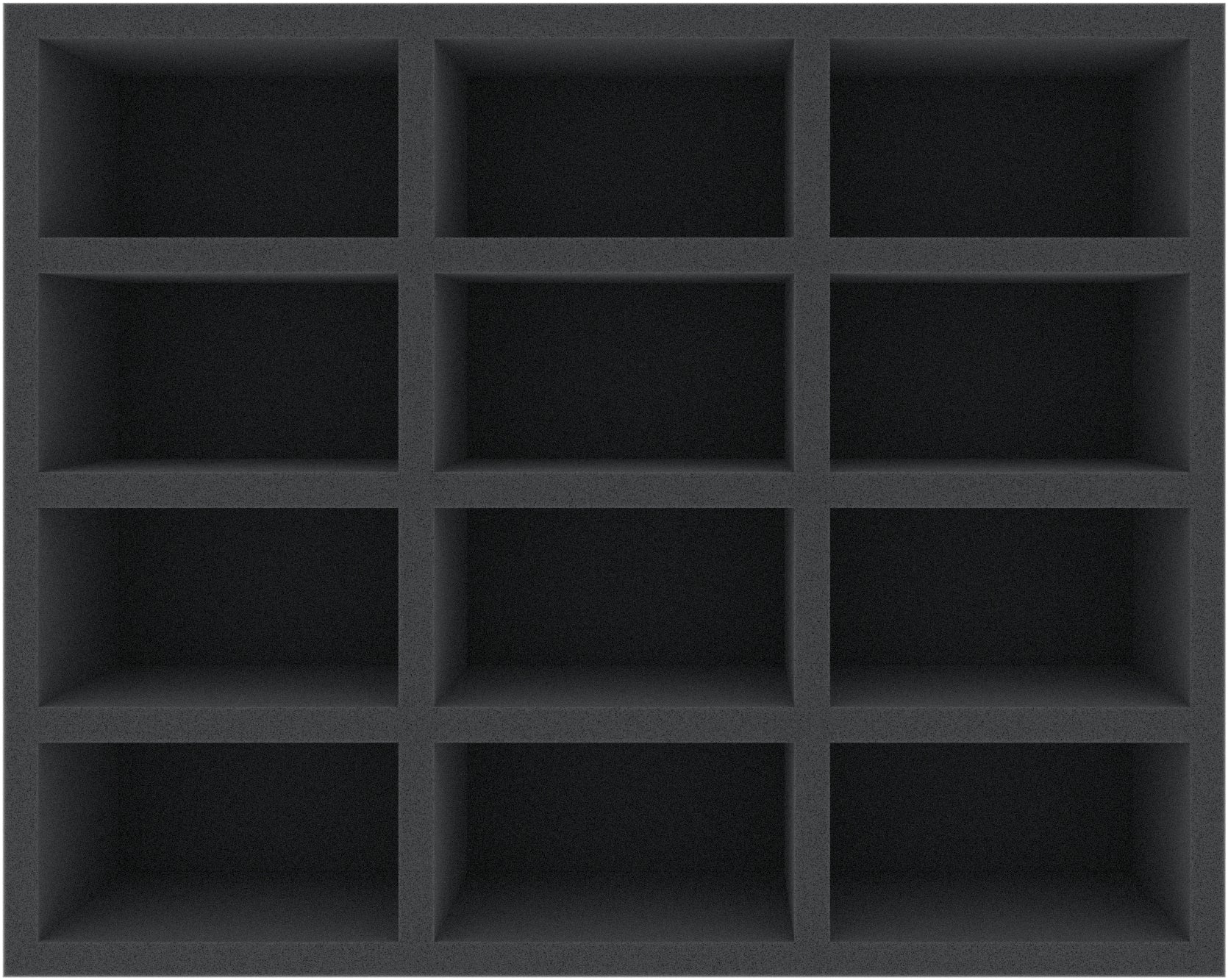 Diese Full-Size-Schaumstoffeinlage ist unterteilt in 12 einzelne Fächer. Die Matte ist besonders gut geeignet, um Miniaturen und Spielmaterial ordentlich und sicher aufzubewahren.