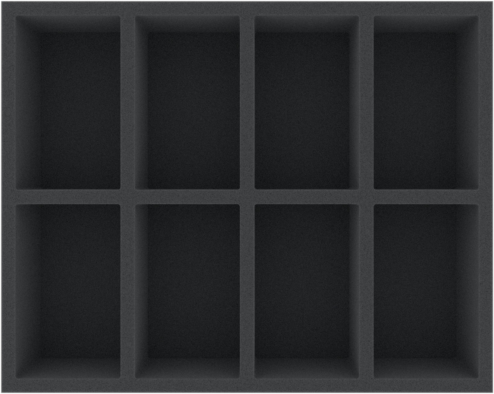 Diese Full-Size-Schaumstoffeinlage ist unterteilt in 8 große Fächer. Dadurch eignet sich die Matte besonders gut zum sicheren Aufbewahren größerer Miniaturen und zum übersichtlichen Verstauen von Spielmaterial.
