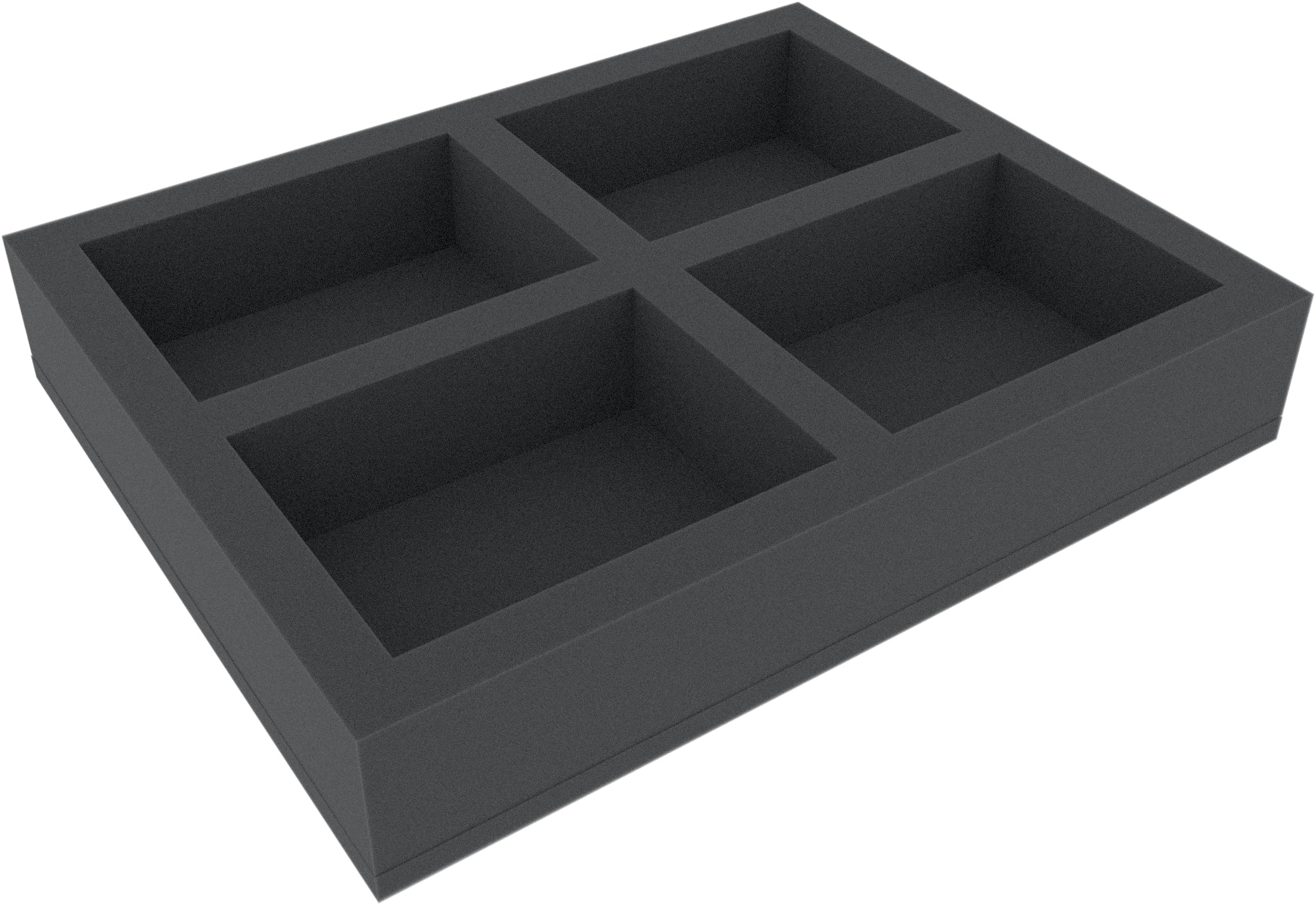 Diese Full-Size-Schaumstoffeinlage ist unterteilt in 4 Fächer. Die vier gleich großen Fächer eignen sich hervorragend zum sicheren Aufbewahren von größeren Figuren, wie Fahrzeuge, Monster oder Charaktermodelle, für verschiedene Brettspiele und Tabletop-Systeme.