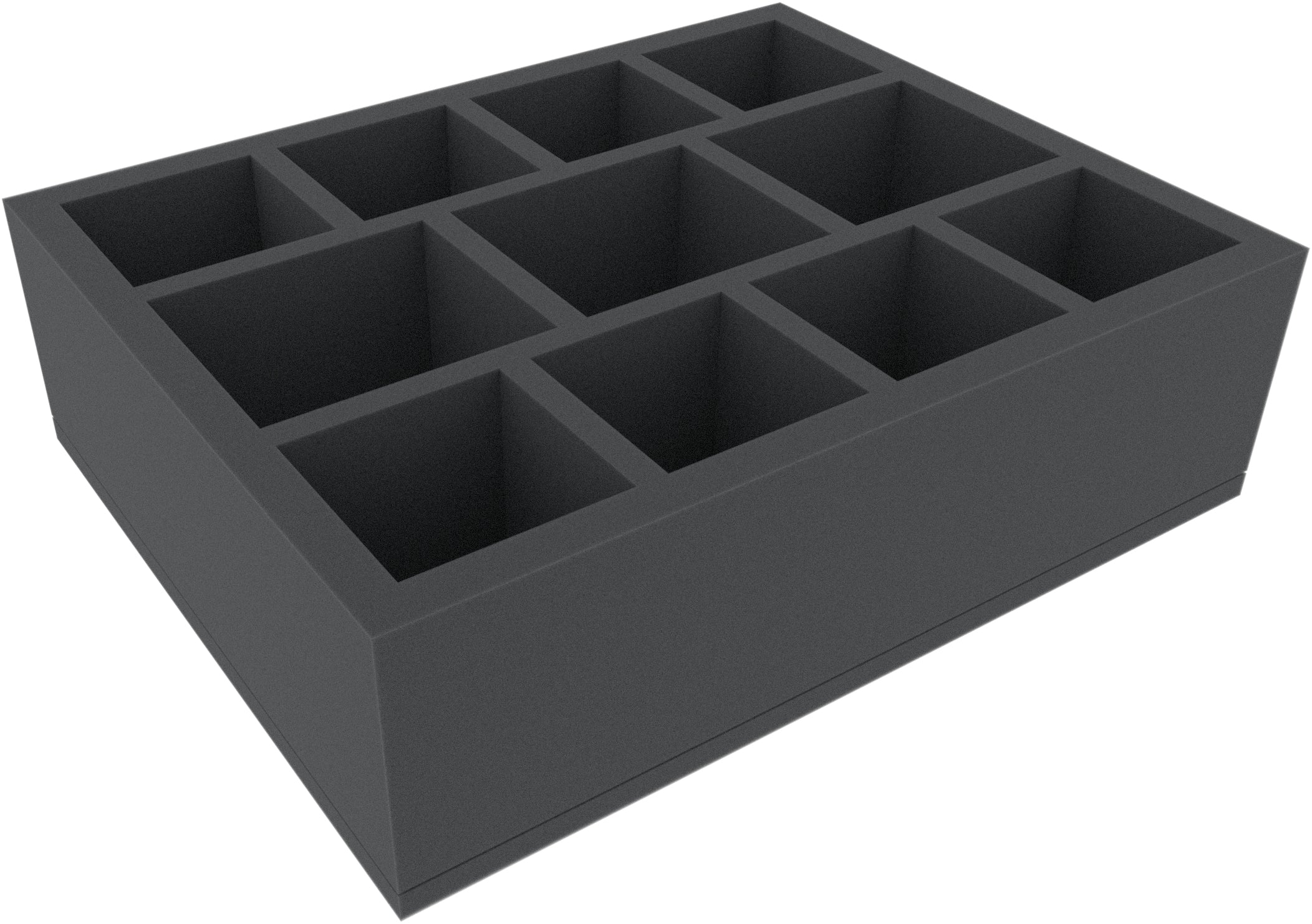 Diese Full-Size-Schaumstoffeinlage ist unterteilt in 11 große Fächer in zwei unterschiedlichen Größen. Das Insert eignet sich besonders gut um größere Miniaturen sicher zu verstauen und zu transportieren. Aber auch Spielmaterial, wie Token und Tiles, lassen sich hier ordentlich aufbewahren.