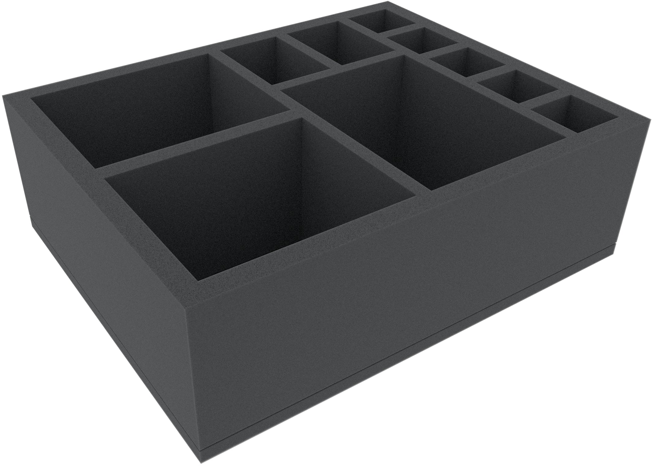 Diese 110 mm hohe Schaumstoffeinlage ist unterteilt in 10 Fächer. Sie eignet sich besonders gut zum sicheren Aufbewahren von Tabletop- und Brettspiel-Miniaturen und anderen empfindlichen Modellen und Kleinteilen.