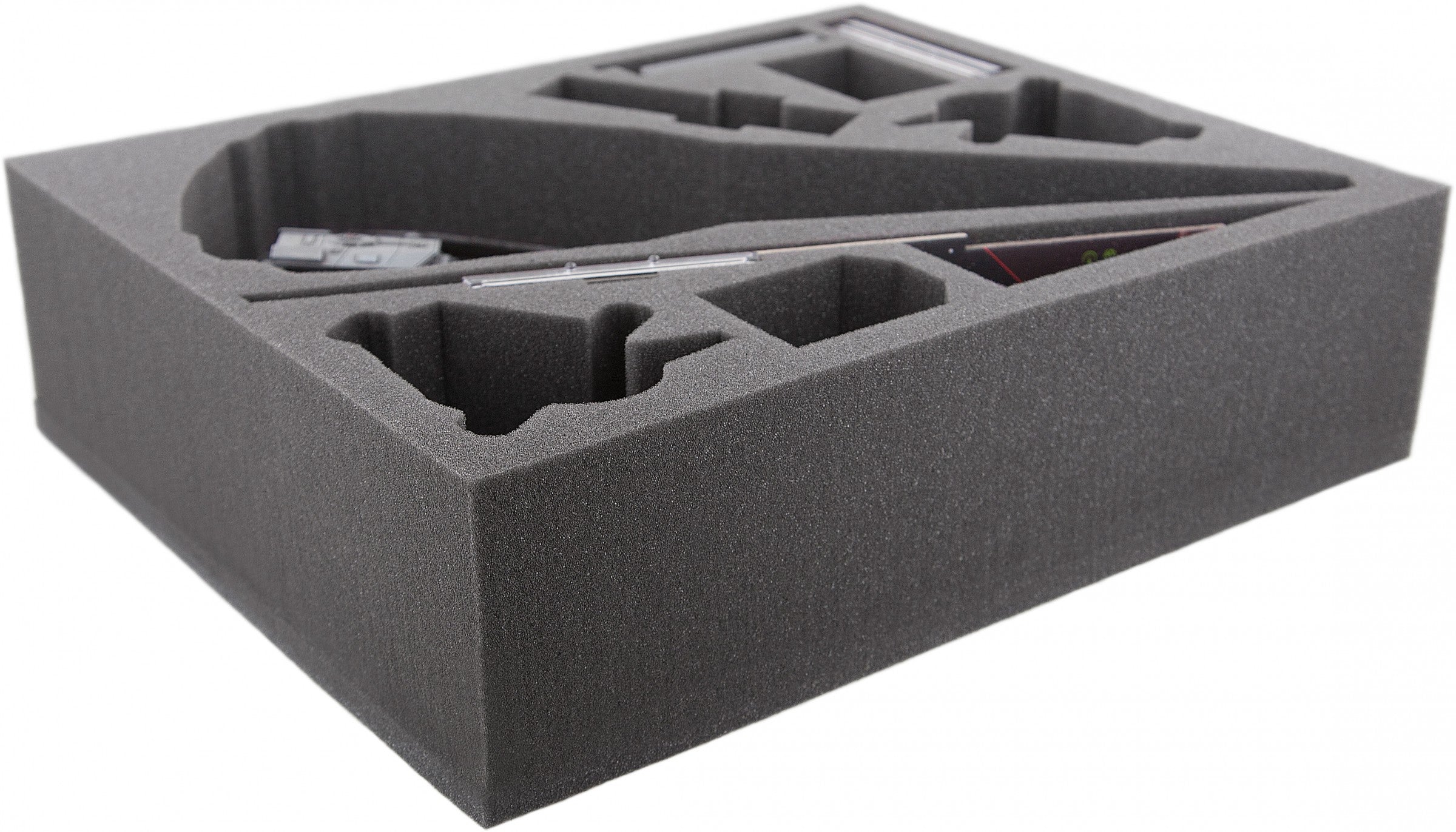 Große Feldherr X-Wing Schaumstoffeinlage für die Imperiale Korvette von X-Wing (Imperial Raider), Slave 1 und / oder Lambda Fähre. Die Einlage bietet natürlich auch noch weiteren sicheren Platz für Zubehör, wie Bases, Token, Ständer oder kleine Raumschiffe auf Base.