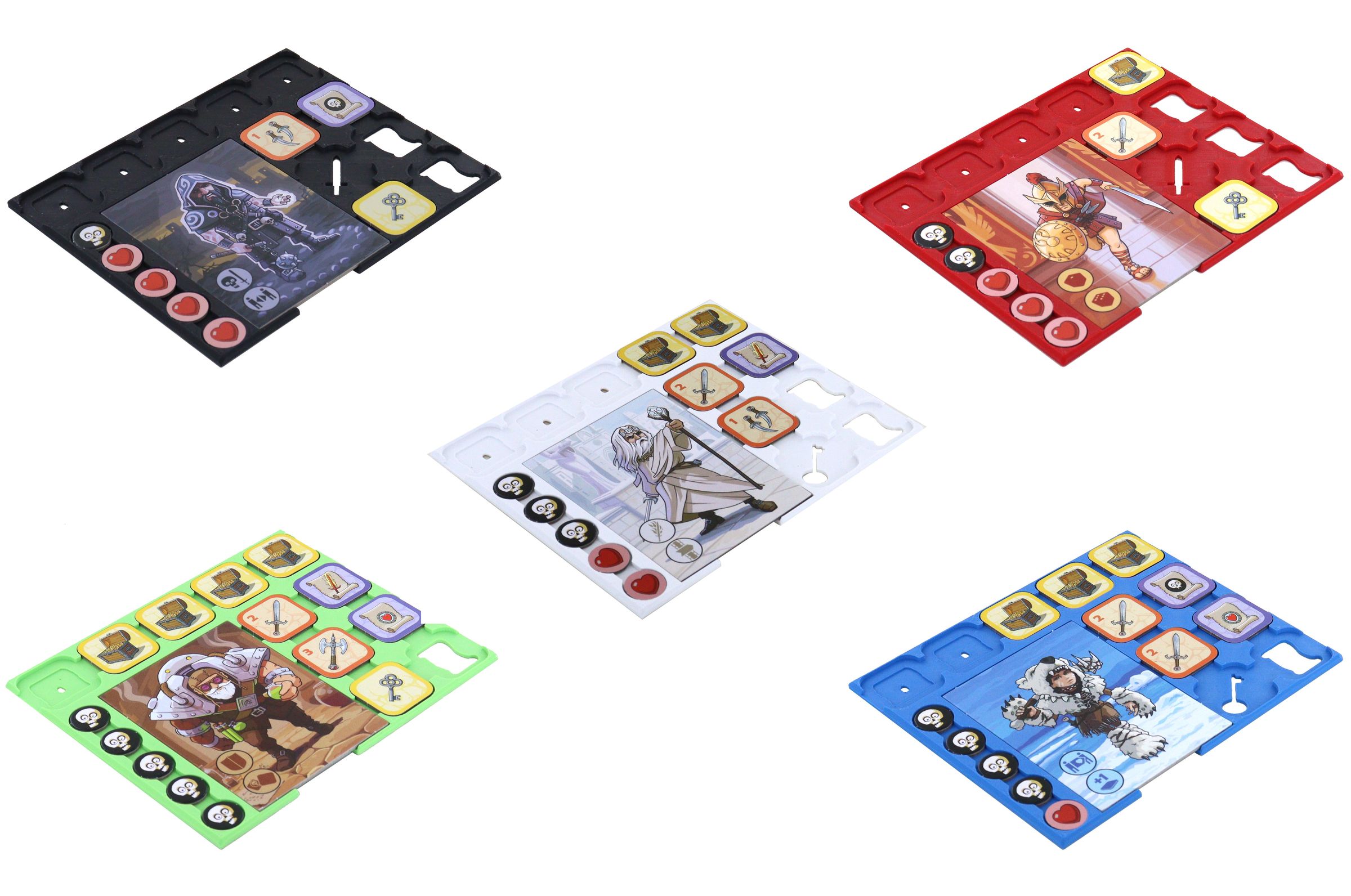 • Praktisches Komplett-Set an Dashboards für das Grundspiel von Karak. Die fünf Spieltafeln vereinfachen euch das Charaktermanagement und helfen, eure Charaktere im Auge zu behalten.