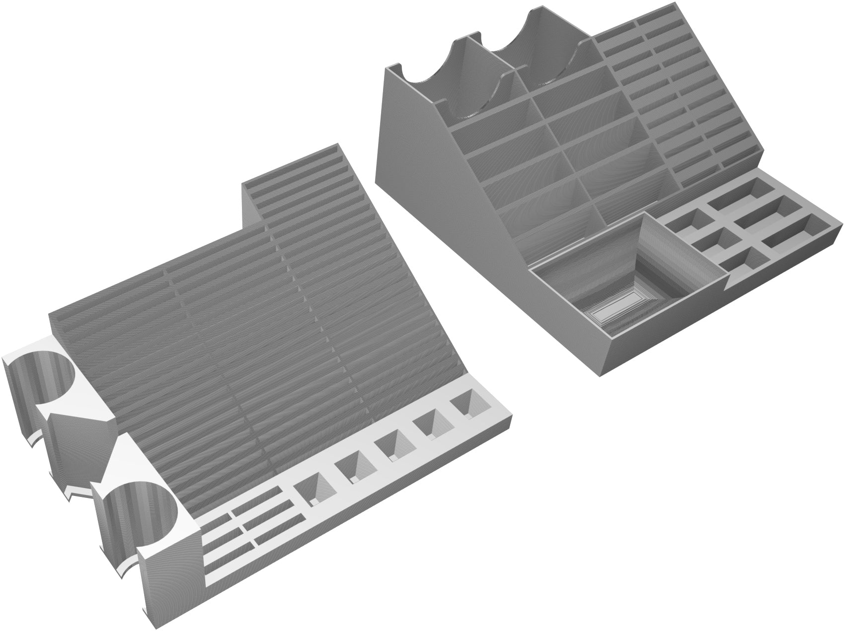 Die beiden Trays aus Kunststoff bieten Platz, um das gesamte Spielmaterial, das du als Spielleiter benötigst, ordentlich auf den Tisch zu bringen und bei Bedarf schnell darauf zuzugreifen.