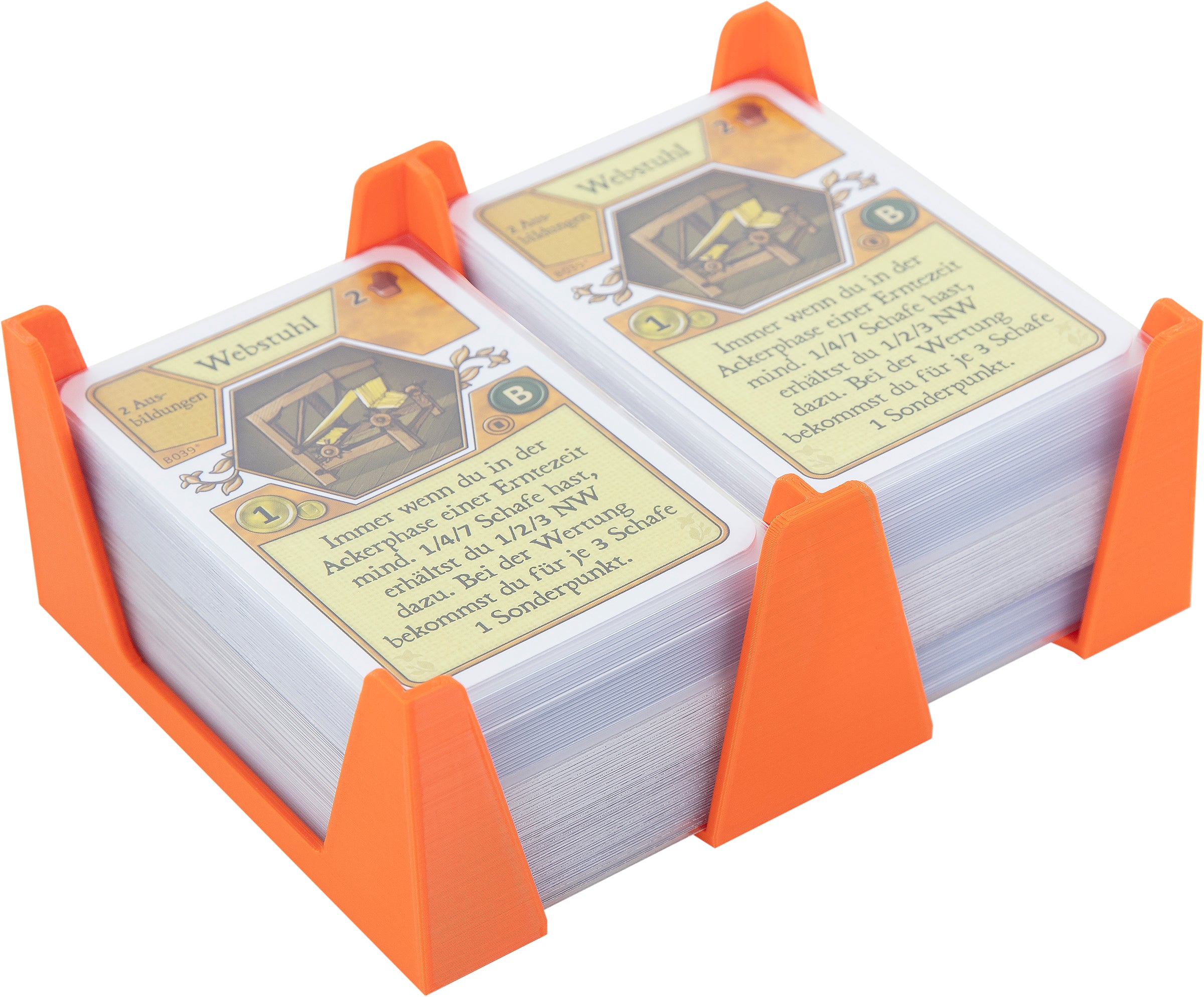 Ob Tabletop, Kartenspiel oder Brettspiel – Der Tischkartenhalter spart Nerven und Zeit. Er hilft dir beim Organisieren der unterschiedlichen Kartentypen während des Spiels, sorgt dafür, dass die Kartenstapel auch mit Sleeves nicht umkippen und am Ende der Partie kannst du deine Spielkarten einfach und ordentlich wegsortieren.