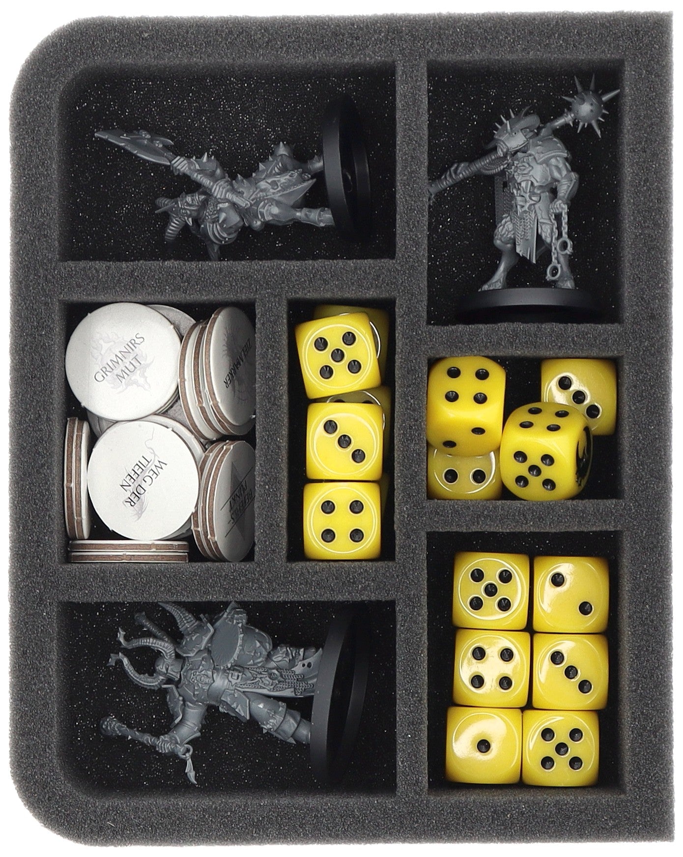 - 1 Feldherr Schaumstoffeinlage mit sieben Fächern für Miniaturen und Spielmaterial (QSMFKR050BO)