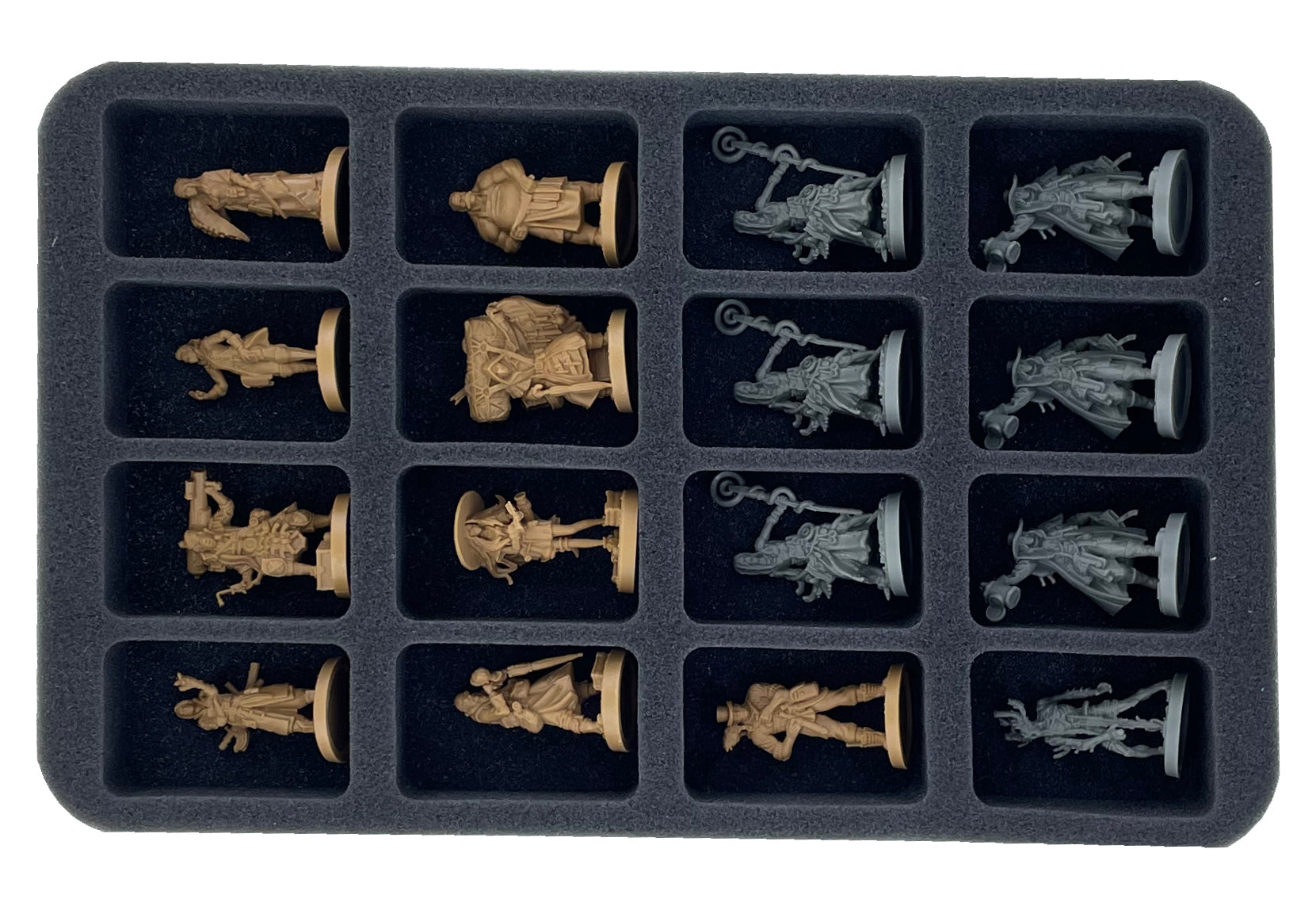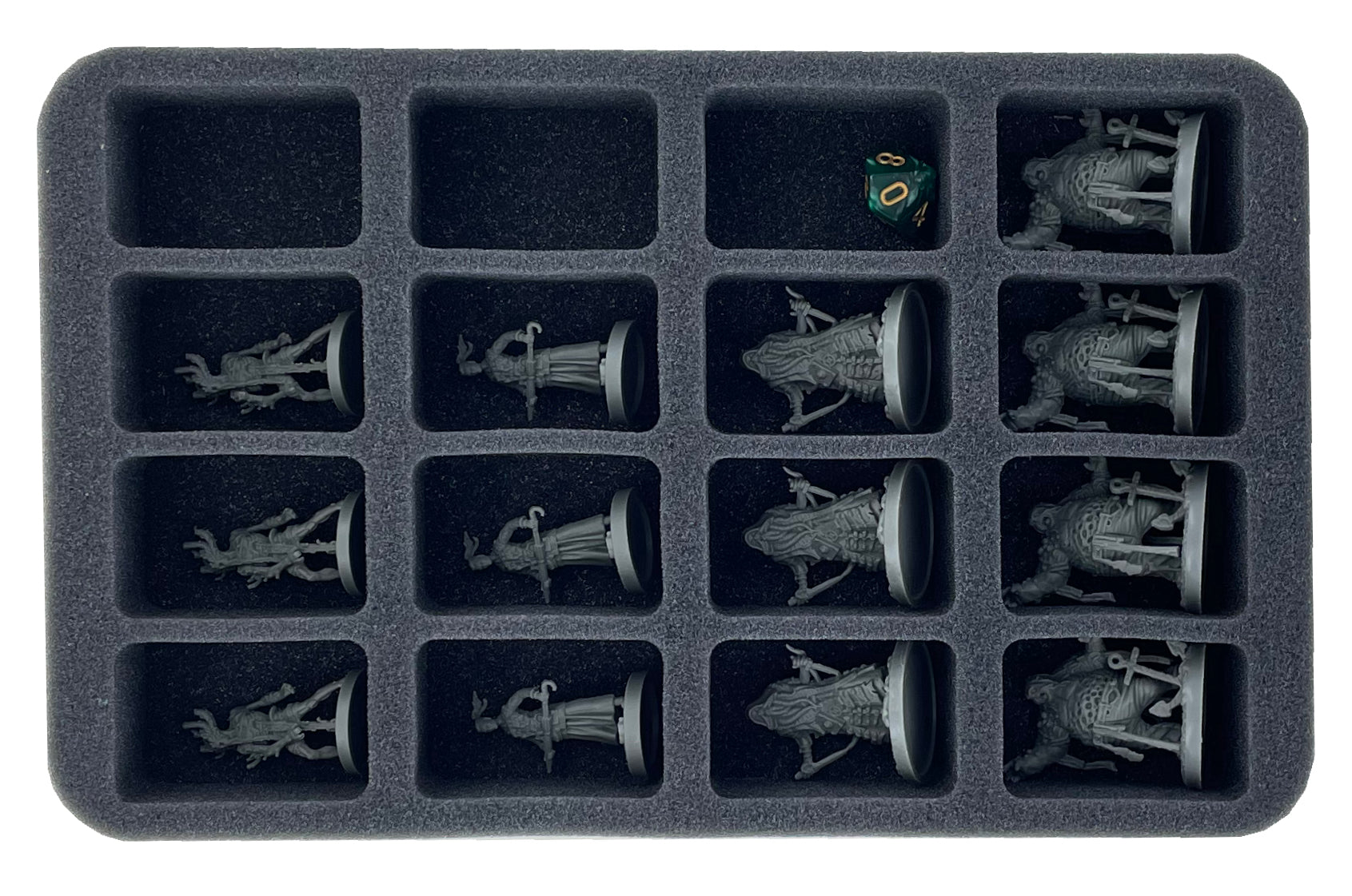 - 2 Half-Size Schaumstoffeinlagen mit jeweils 16 Fächern für Miniaturen wie Bloated Drowned Man, Acolyte Bloodletters, Drowned Man, Cultist und für kleinteiliges Spielmaterial (HS045BF05BO)