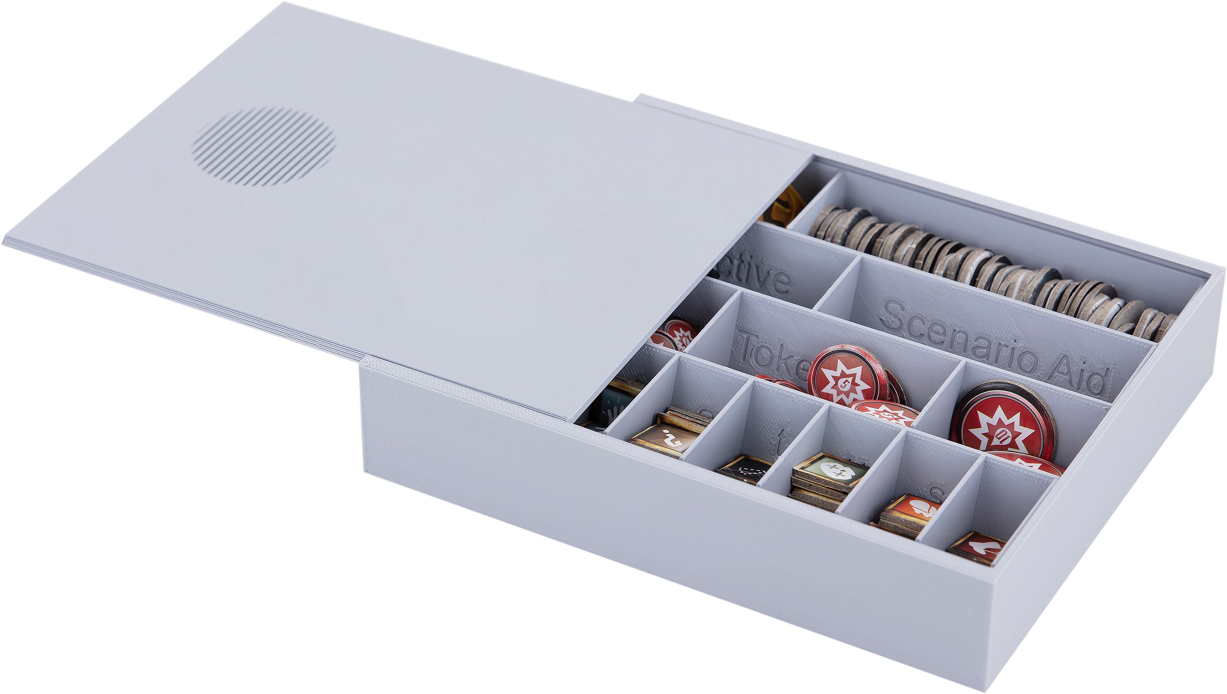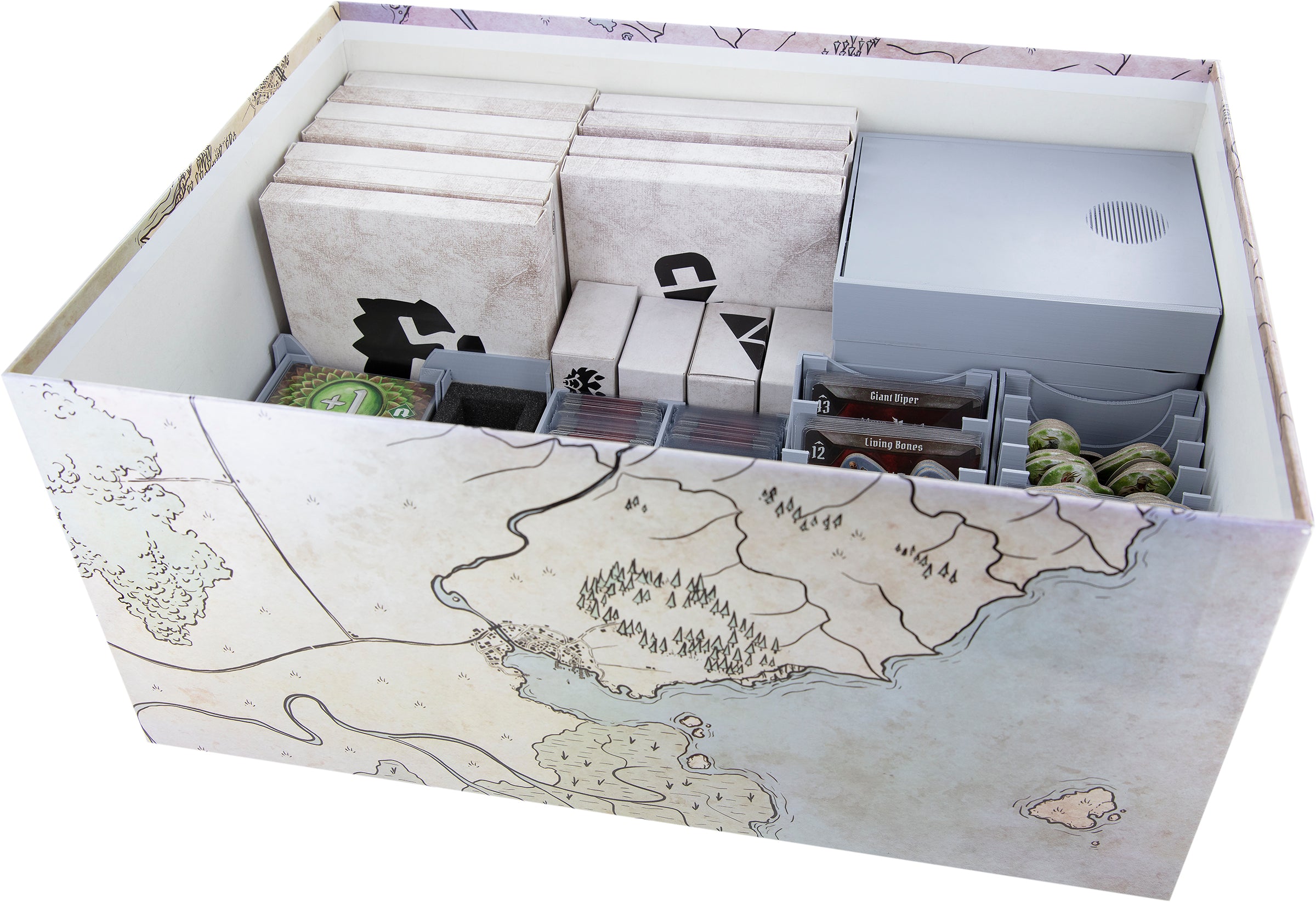 - Bietet Platz für alle Miniaturen und das gesamte Spielmaterial aus dem „Gloomhaven“-Grundspiel.