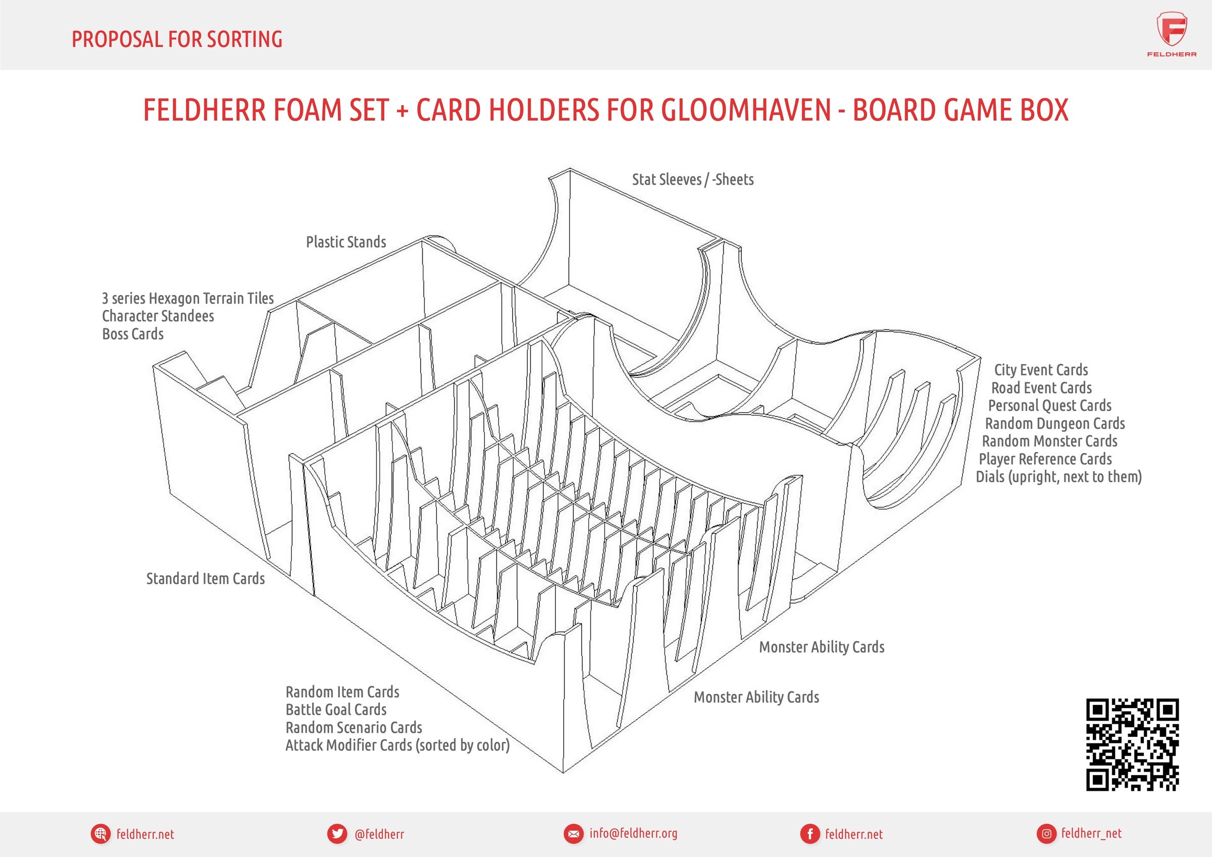 - Dieses Feldherr Organizer-Set macht aus dem "Feldherr Schaumstoff-Set für Gloomhaven" (CE01Set) das "Feldherr Schaumstoff-Set + Kartenhalter für Gloomhaven" (ORG058).