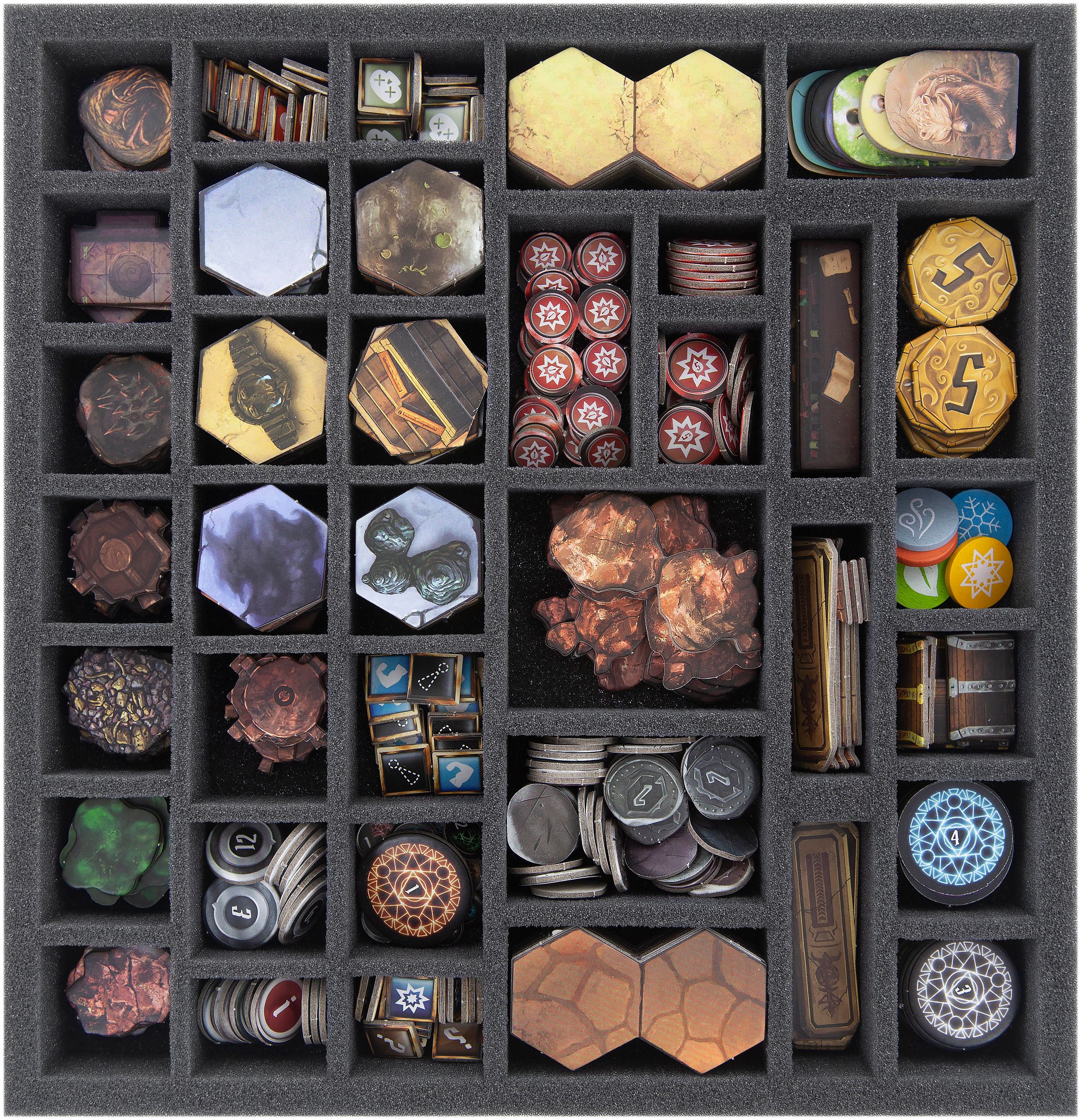 - 1 Schaumstoff-Insert für die Brettspielbox mit 38 Fächern für Token, Discs und Standees (CEMEGX035BO)