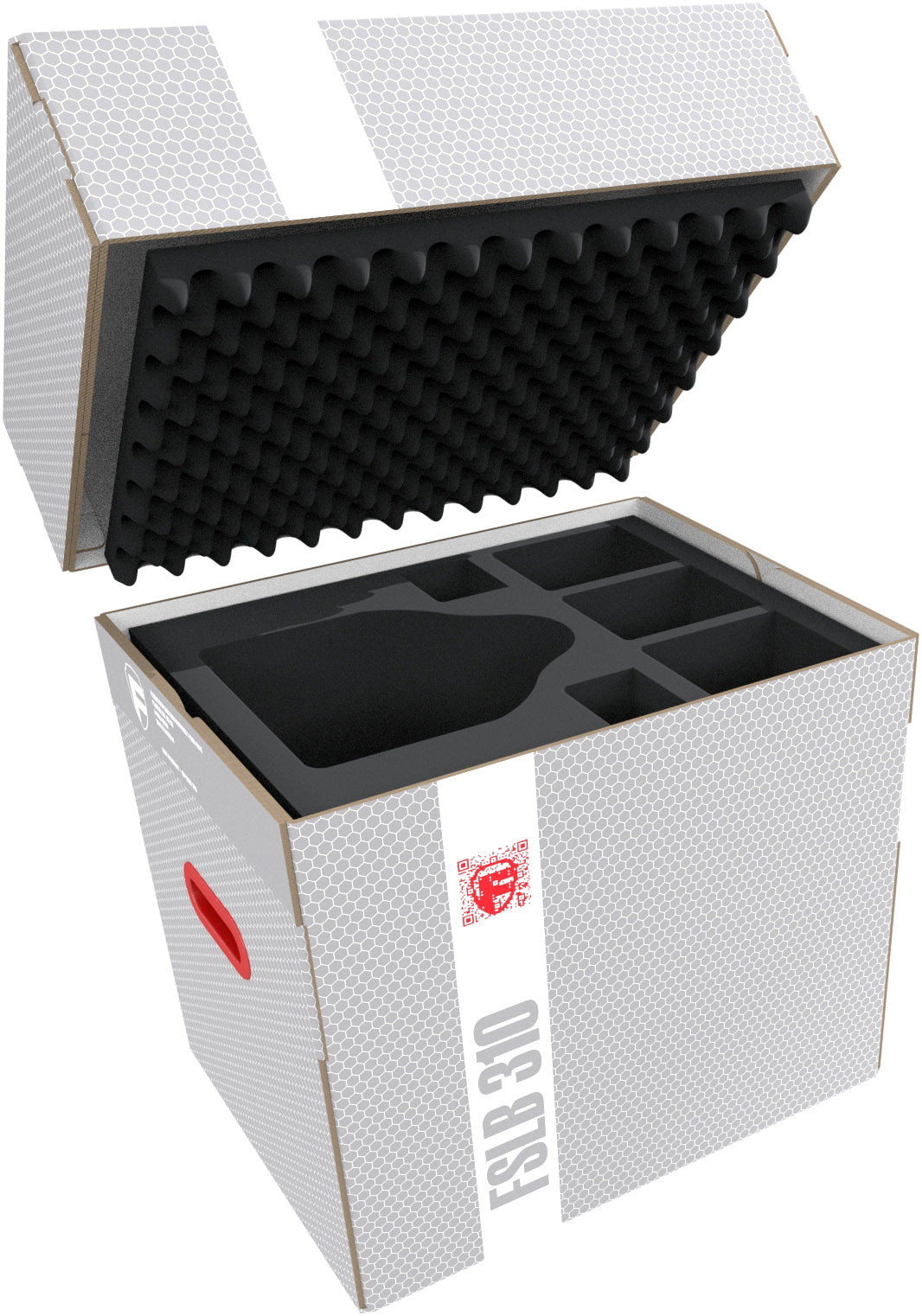 Die Lagerbox FSLB310 besteht aus beschichtetem, doppelwelligem Karton und ist damit einerseits sehr leicht und außerdem sehr stabil. Der aufsetzbare Deckel schützt deine Modelle zuverlässig vor Staub und anderen äußeren Einflüssen. Mit den beiden kunststoffverstärkten Tragegriffen an den Seiten kannst du die Box bequem zum nächsten Spielabend transportieren.