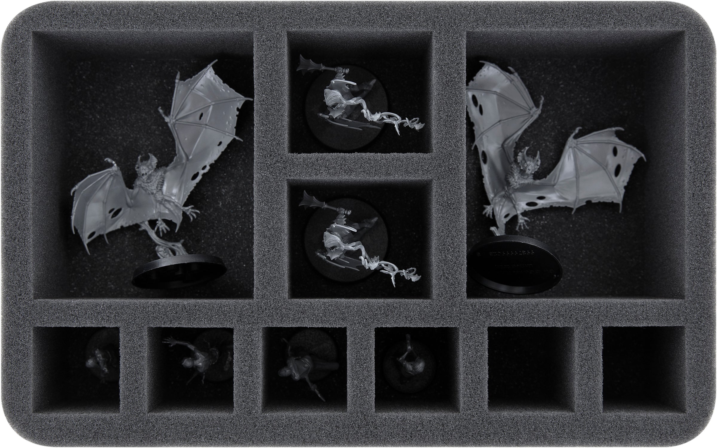 - 2 Half-Size-Schaumstoffeinlagen mit je 10 Fächern für z. B. Fell Bats oder den Vampire Lord (HS070A030)