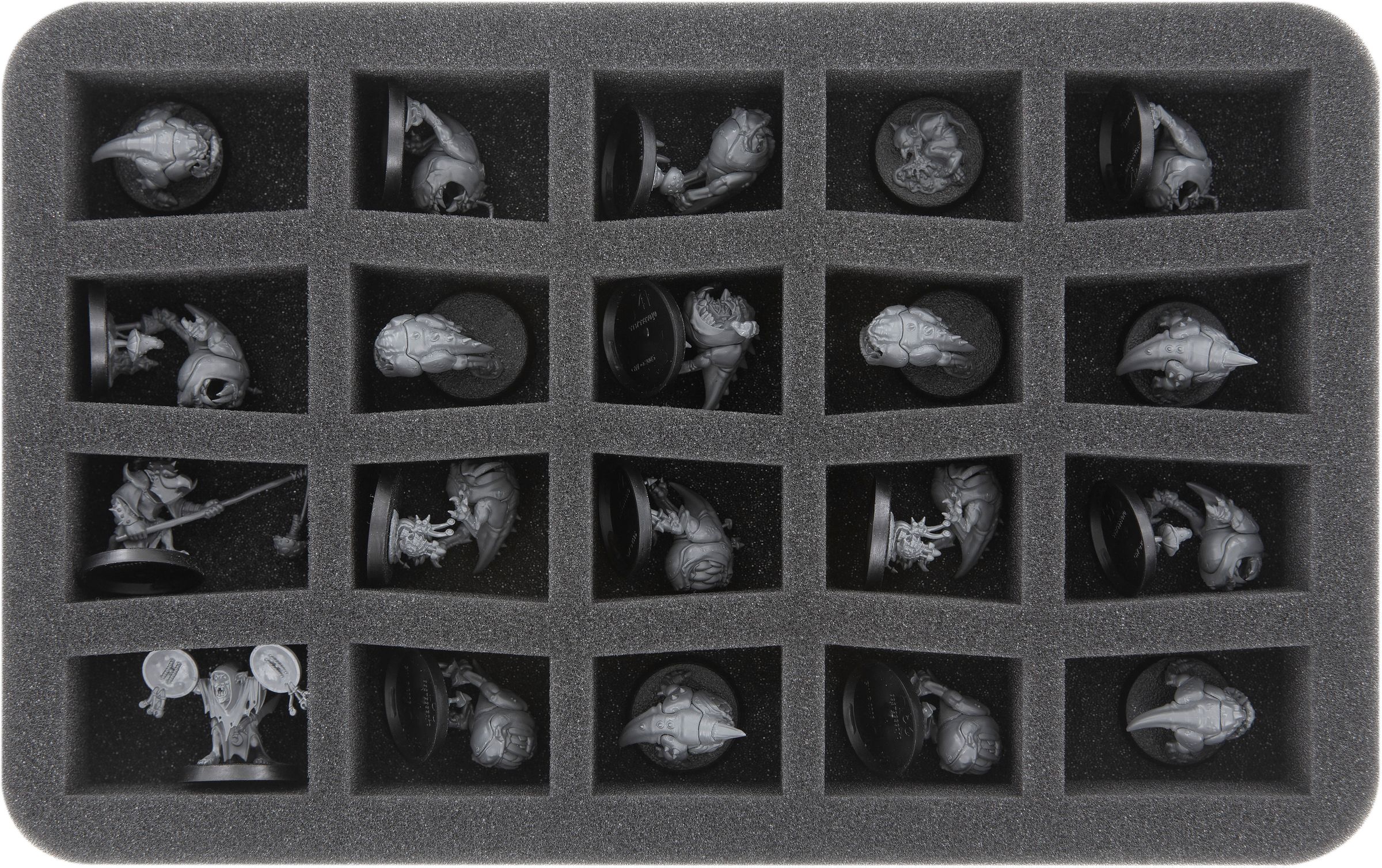 Die zwei Schaumstoffeinlagen für Squigs, Stabbas und Shootas sind in jeweils 20 Fächer unterteilt. Die konische Form der Fächer sorgt für eine optimale Platzausnutzung.