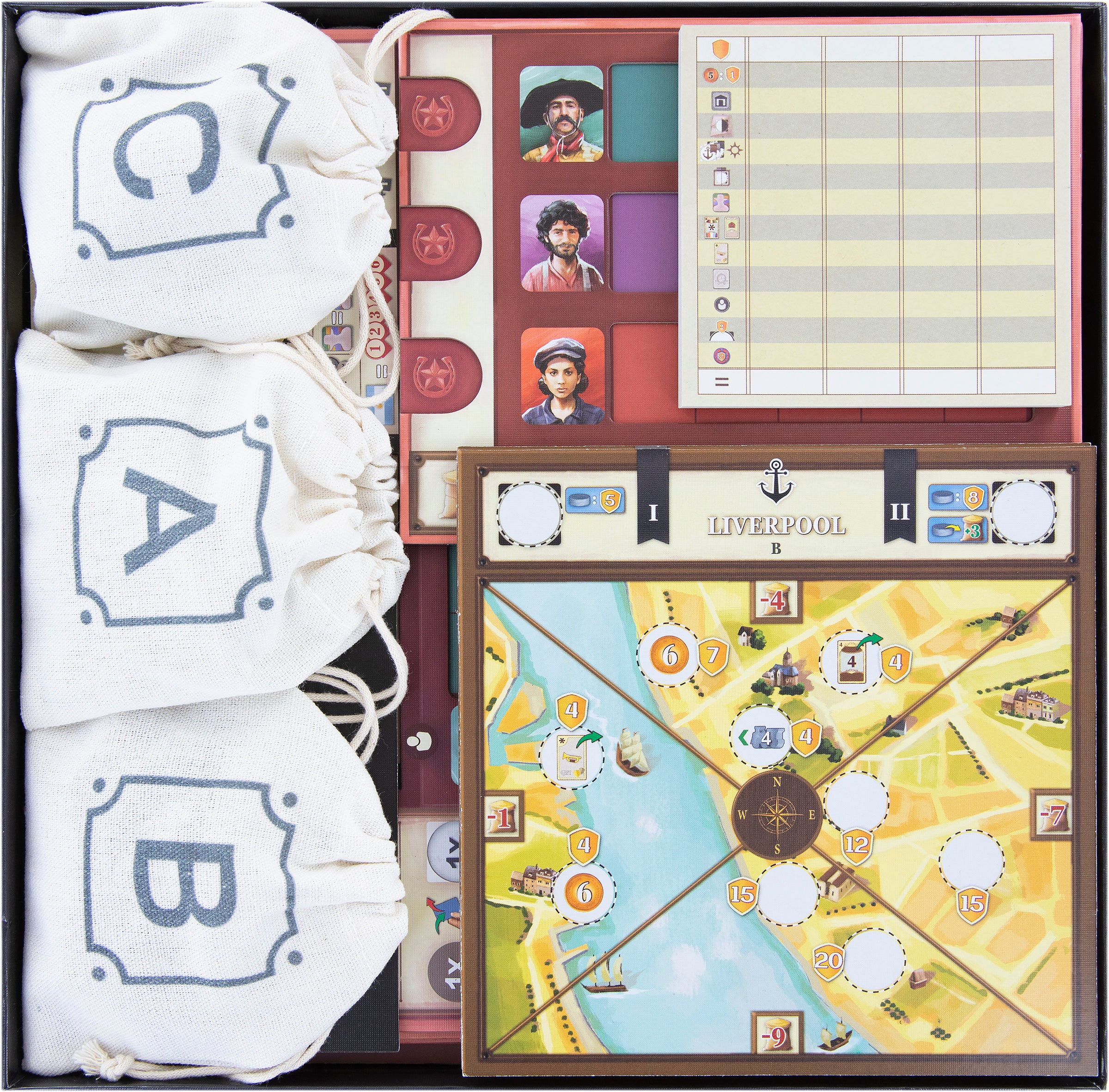 Schluss mit dem mühsamen Sortieren und Anordnen von Plättchen, Karten und Zubehör zu Beginn jeder Partie. Mit den Feldherr Karten- und Tokenhaltern des Organizers ist alles kompakt verstaut und genau dort, wo du es brauchst. Vom Arbeitsmarkt-Anzeiger bis hin zu einer handvoll Pesos - jedes Plättchen, jeder Marker und jede Karte erhält einen Platz. Das erleichtert dir nicht nur das Aufräumen nach dem Spiel, sondern sorgt auch für einen flotten Start. Nimm einfach die Trays und die gefüllten Stoffbeutel aus dem Spielkarton und verteil sie auf dem Spieltisch. So bleibt dir mehr Zeit, um das Spiel in vollen Zügen zu genießen.