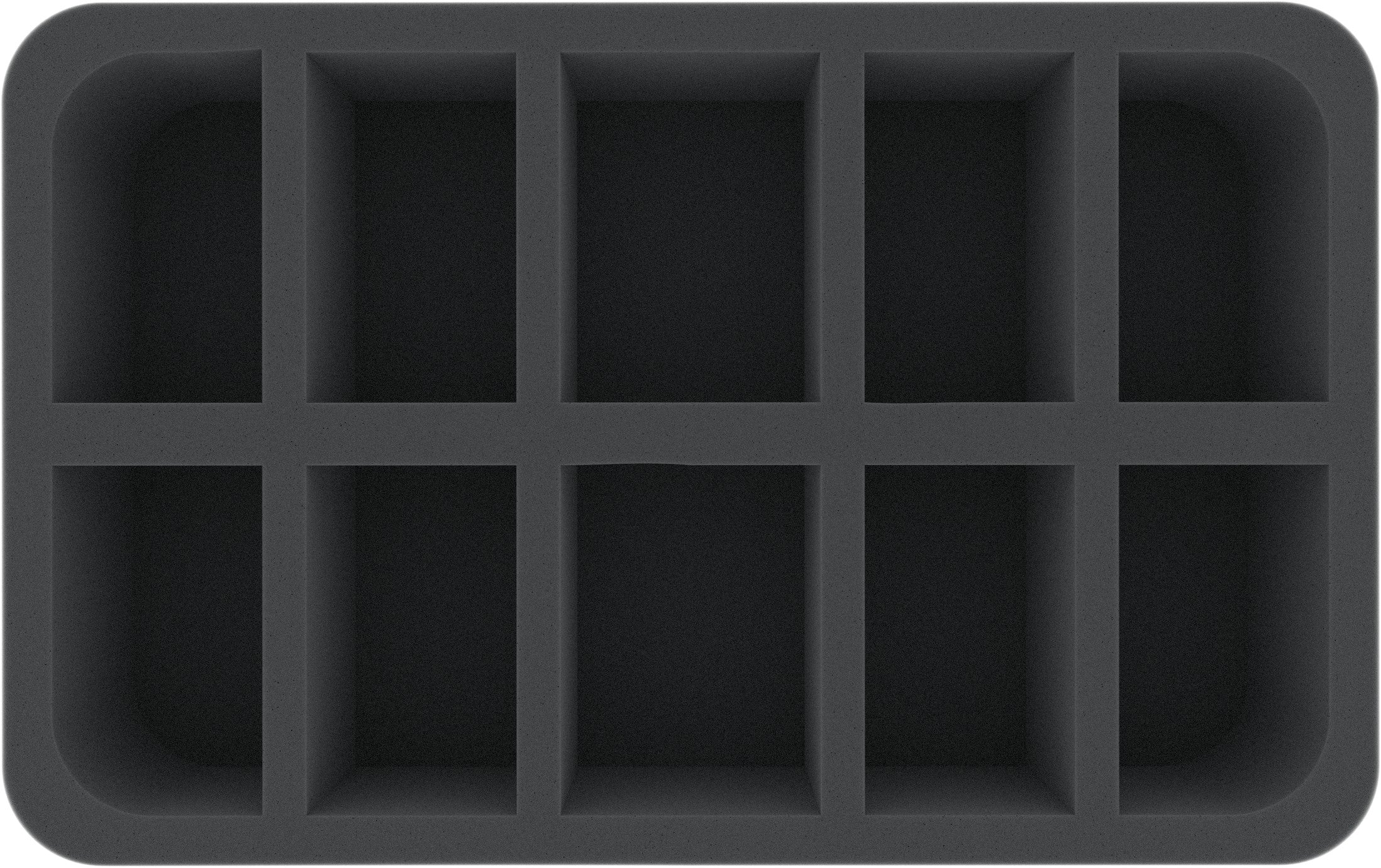 Diese Half-Size-Schaumstoffeinlage ist unterteilt in 10 Fächer unterschiedlicher Größe. Sie eignet sich besonders gut zum sicheren Aufbewahren von kleinen bis mittelgroßen Figuren für verschiedene Brettspiele und Tabletop-Systeme. Auch Spielmaterial oder andere Kleinteile lassen sich hier ordentlich verstauen.