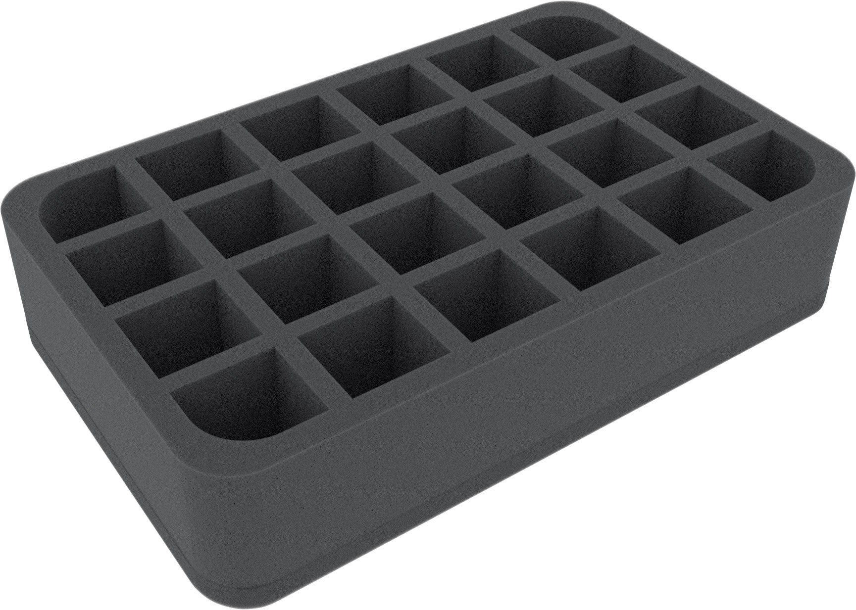 Diese Half-Size-Schaumstoffeinlage ist unterteilt in 24 Fächer gleicher Größe. Sie eignet sich besonders gut zum sicheren Aufbewahren von kleinen bis mittelgroßen Figuren für verschiedene Brettspiele und Tabletop-Systeme. Auch Spielmaterial oder andere Kleinteile lassen sich hier ordentlich verstauen.