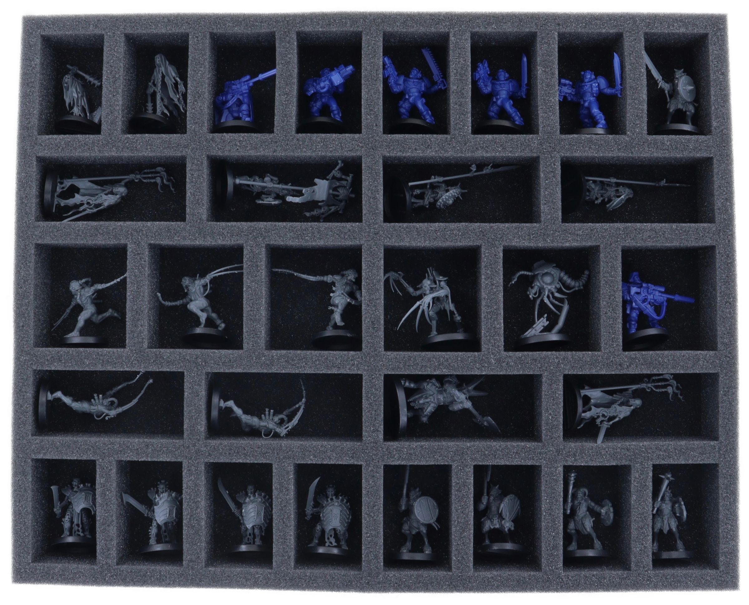 - 1 Full-Size-Schaumstoffeinlage mit 30 Fächern für z. B. Daemonetten, ausladende Figuren wie Standartenträger und Musiker (FS040A033)