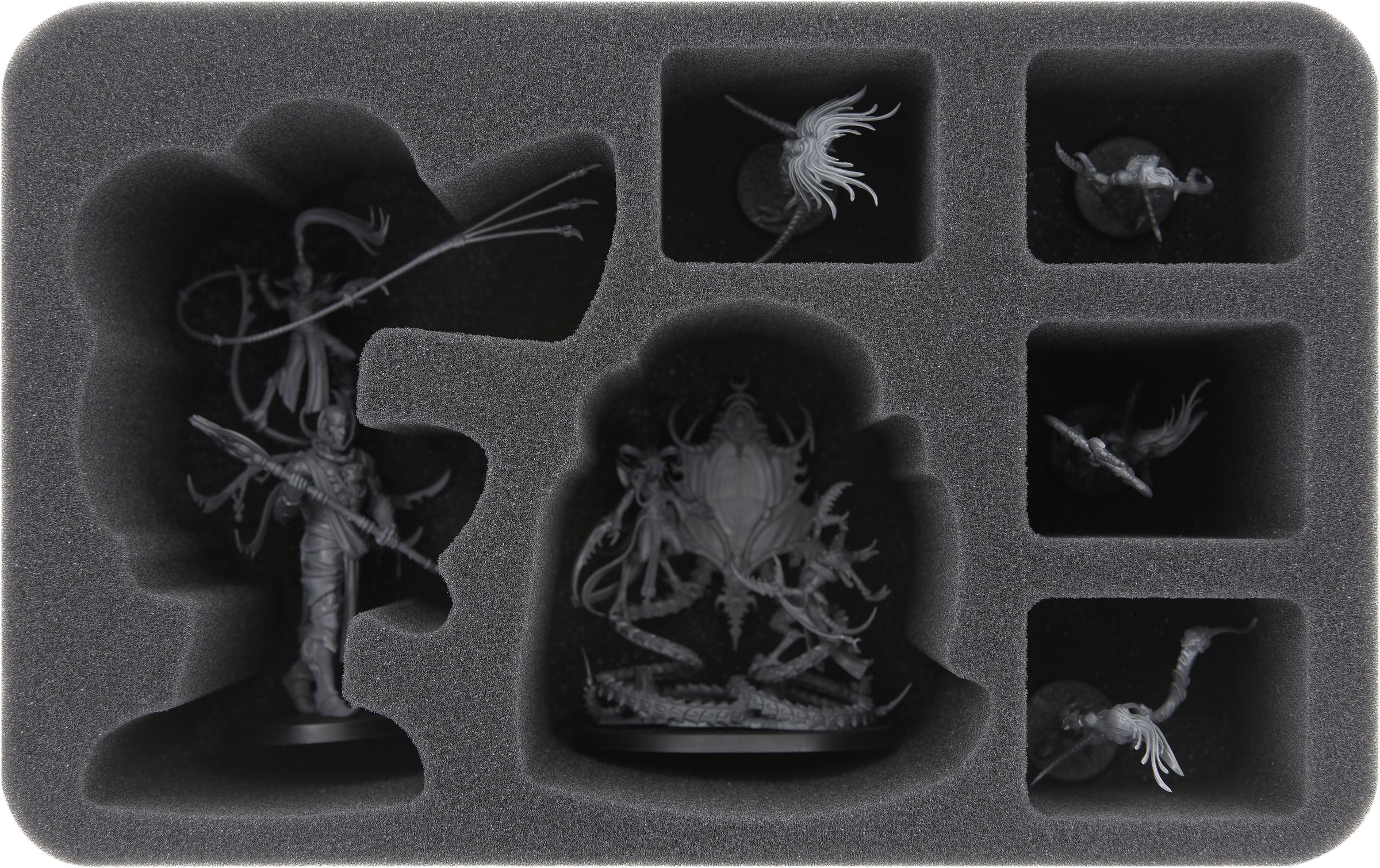 • 1 Half-Size-Schaumstoffeinlage mit 4 Fächern für z. B. Syll'Esske + Contorted Epitome + Herald of Slaanesh, Die Masque + ausladende Daemonetten (HSMEOF095BO)