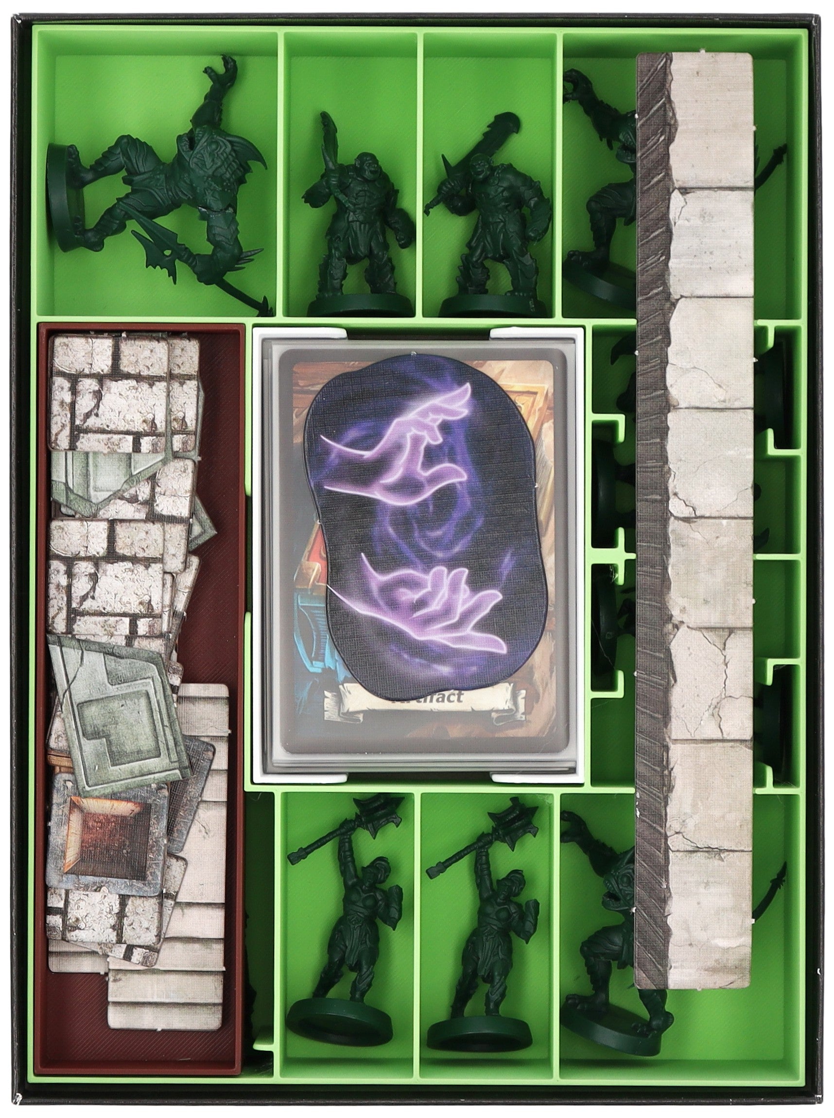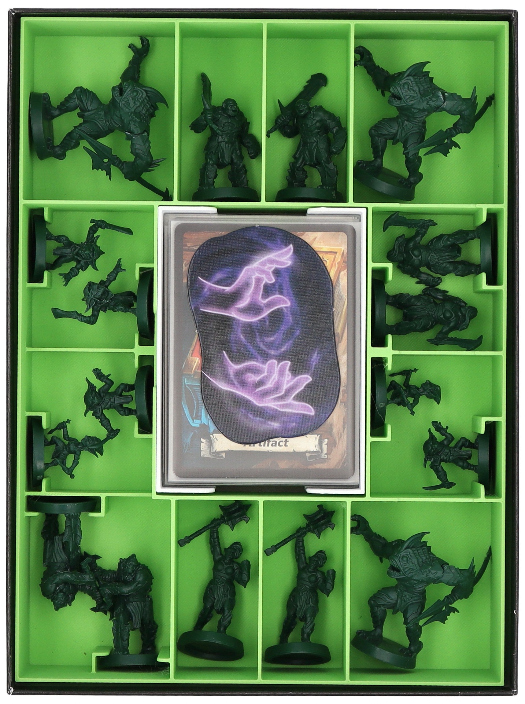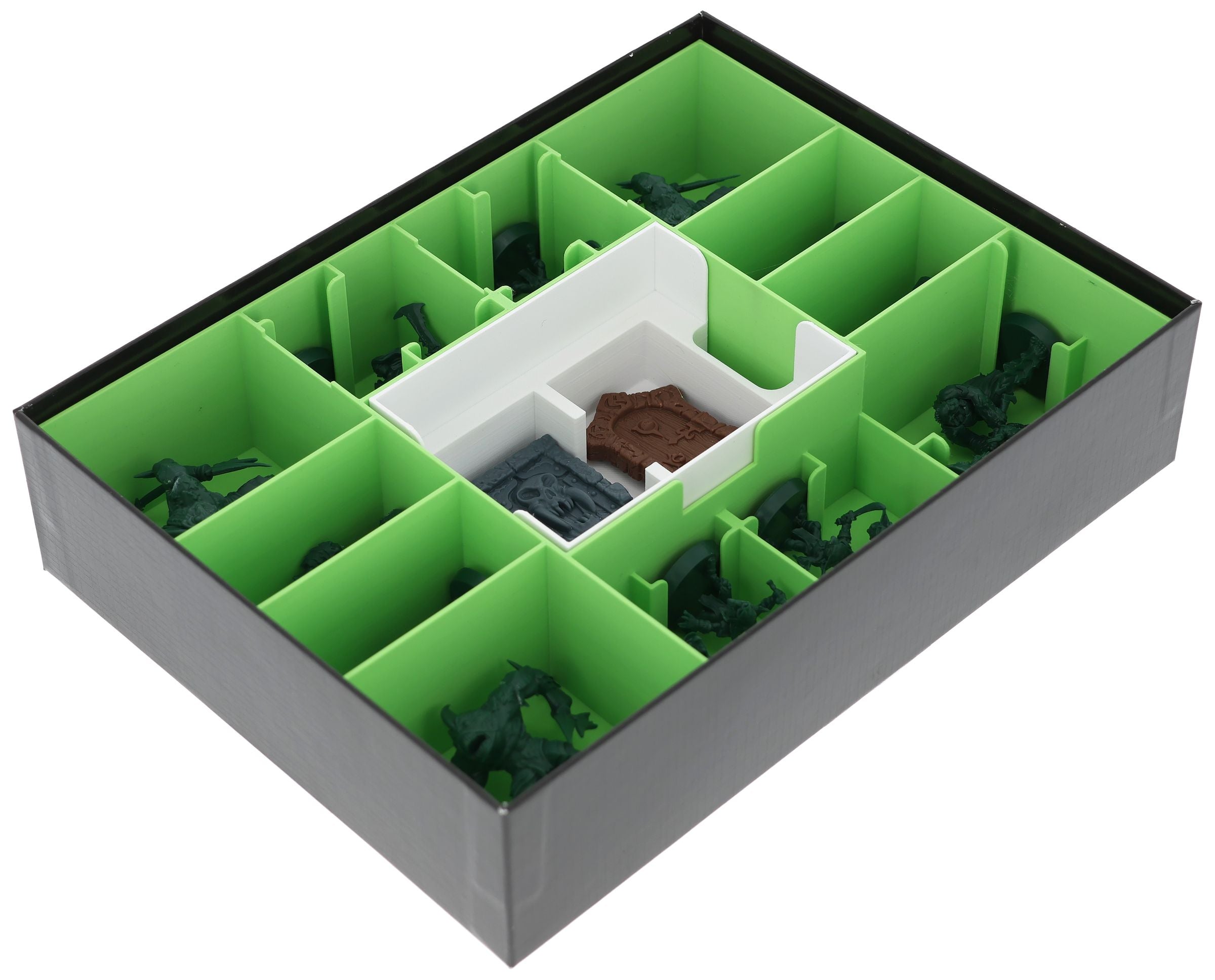 - Dank der übersichtlichen Fächer findest du deine Miniaturen und das Spielmaterial im Vergleich zum originalen Plastikeinsatz schneller und kannst sie leichter entnehmen.