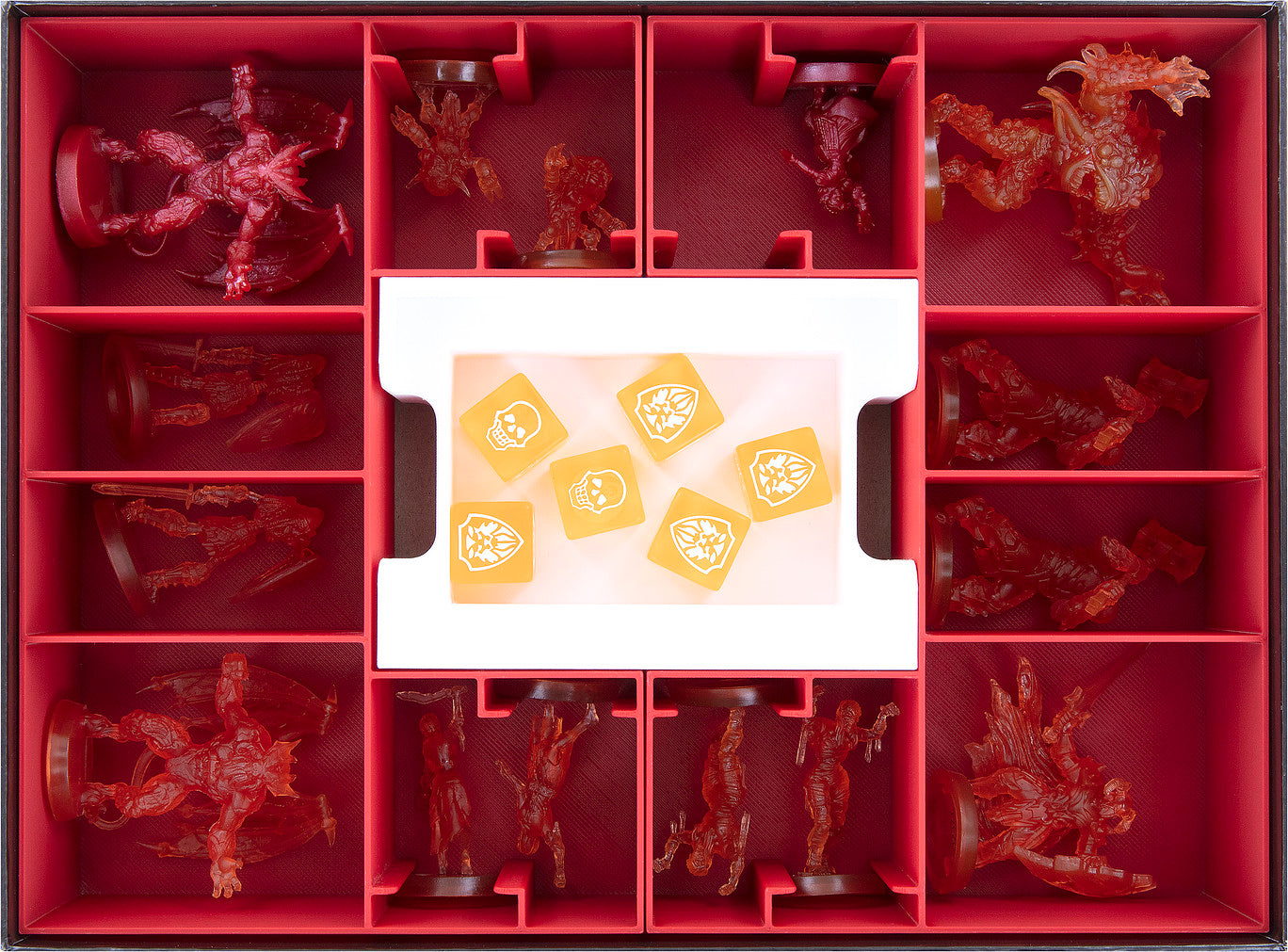 - Dank der übersichtlichen Fächer findest du deine Miniaturen im Vergleich zum Originaleinsatz schneller und entnimmst diese einfacher.