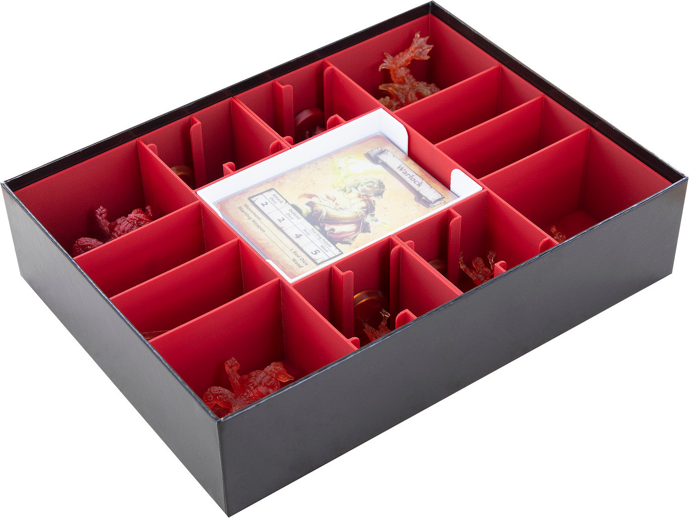 Damit man sich immer deiner Heldentaten erinnert und du dich problemlos ins Abenteuer stürzen kannst, unterstützen wir dich mit dem passenden Feldherr Organizer für deine Brettspielbox. Neben allen Inhalten der Erweiterung, bleibt noch Platz für eine Miniatur aus einer kleineren Erweiterung.