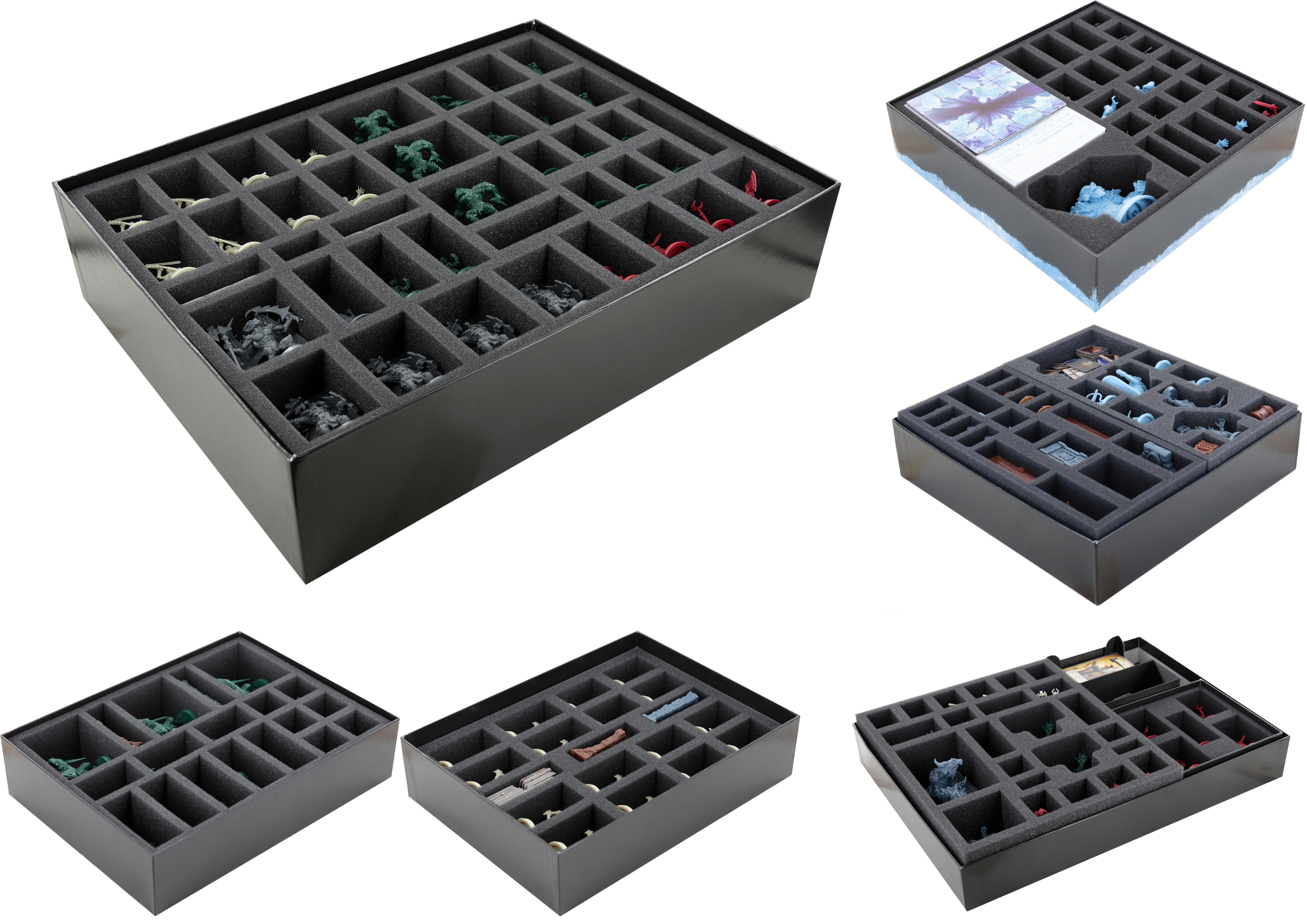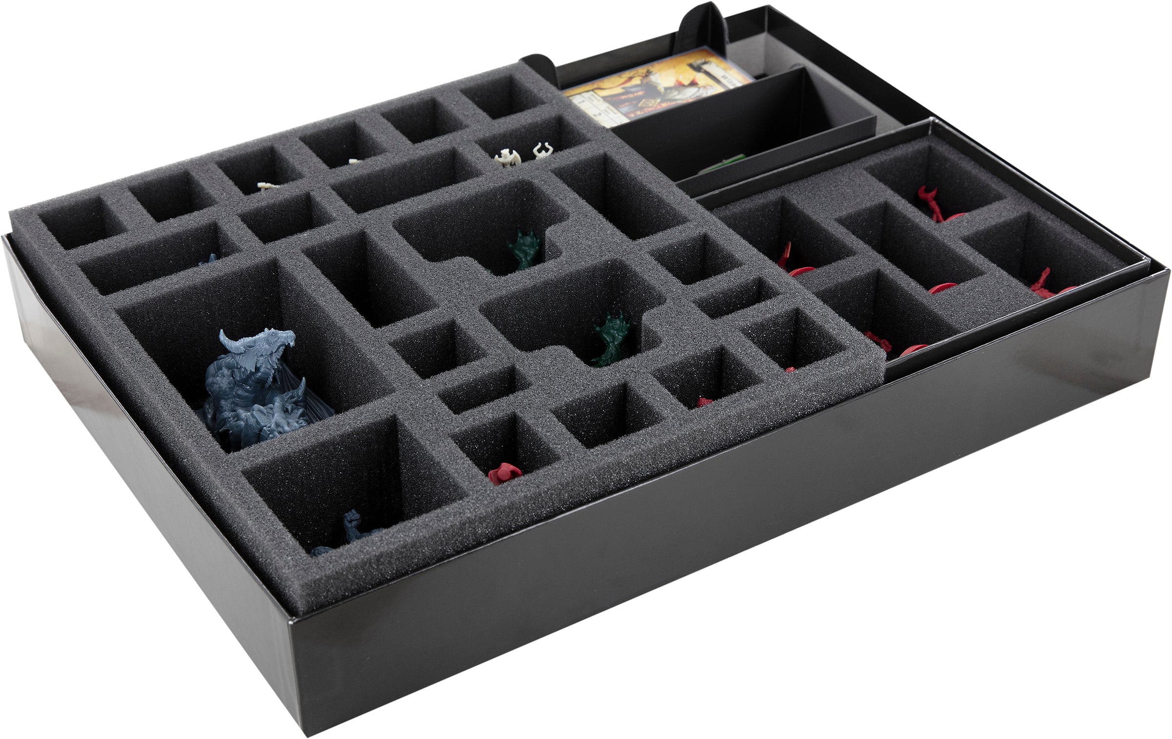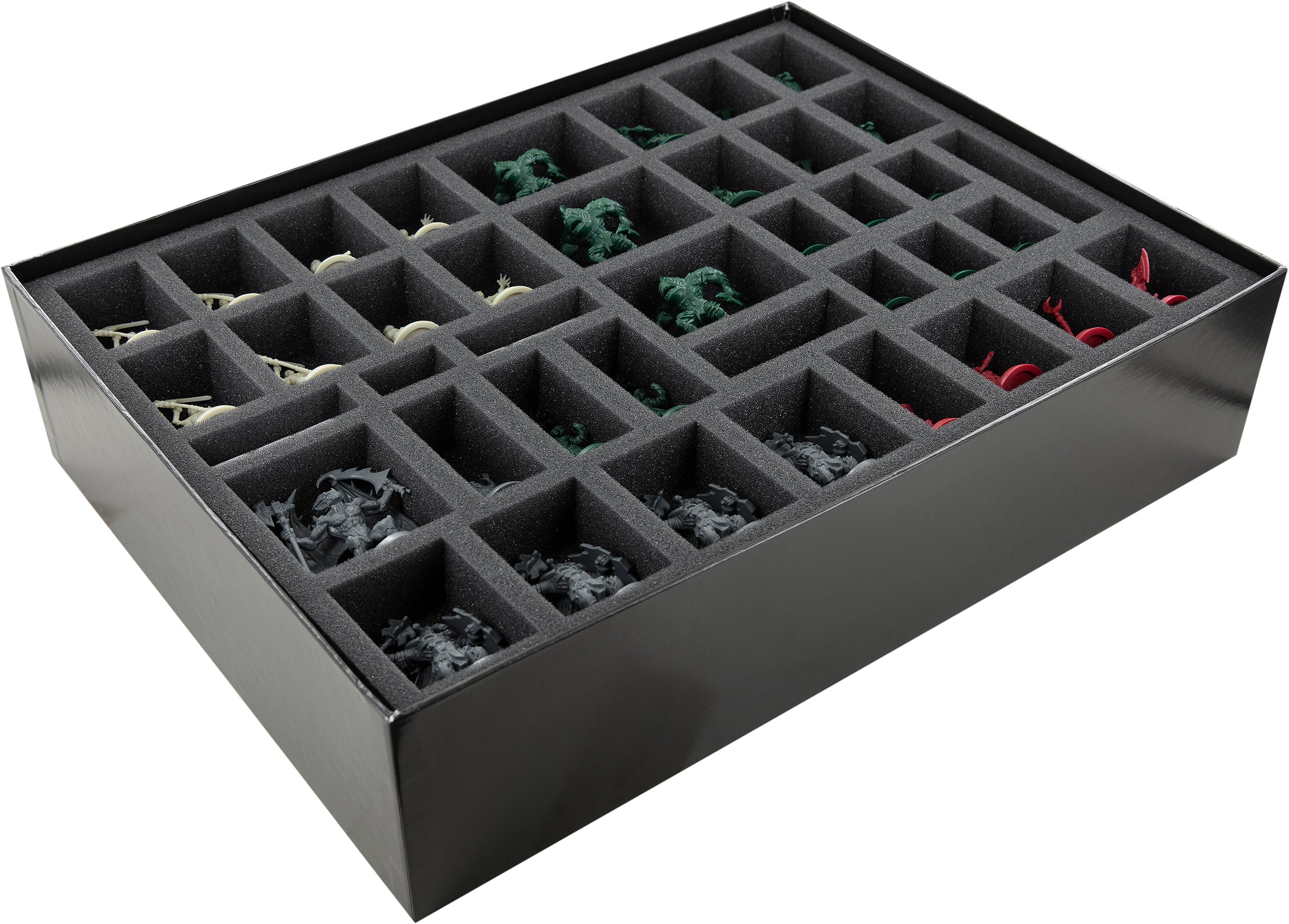 - Egal ob Miniaturen aus dem Grundspiel oder den Erweiterungen, die Schaumstoffeinlagen bieten deinen Figuren und Geländeteilen dank passgenauer Fächer zuverlässigen Schutz.