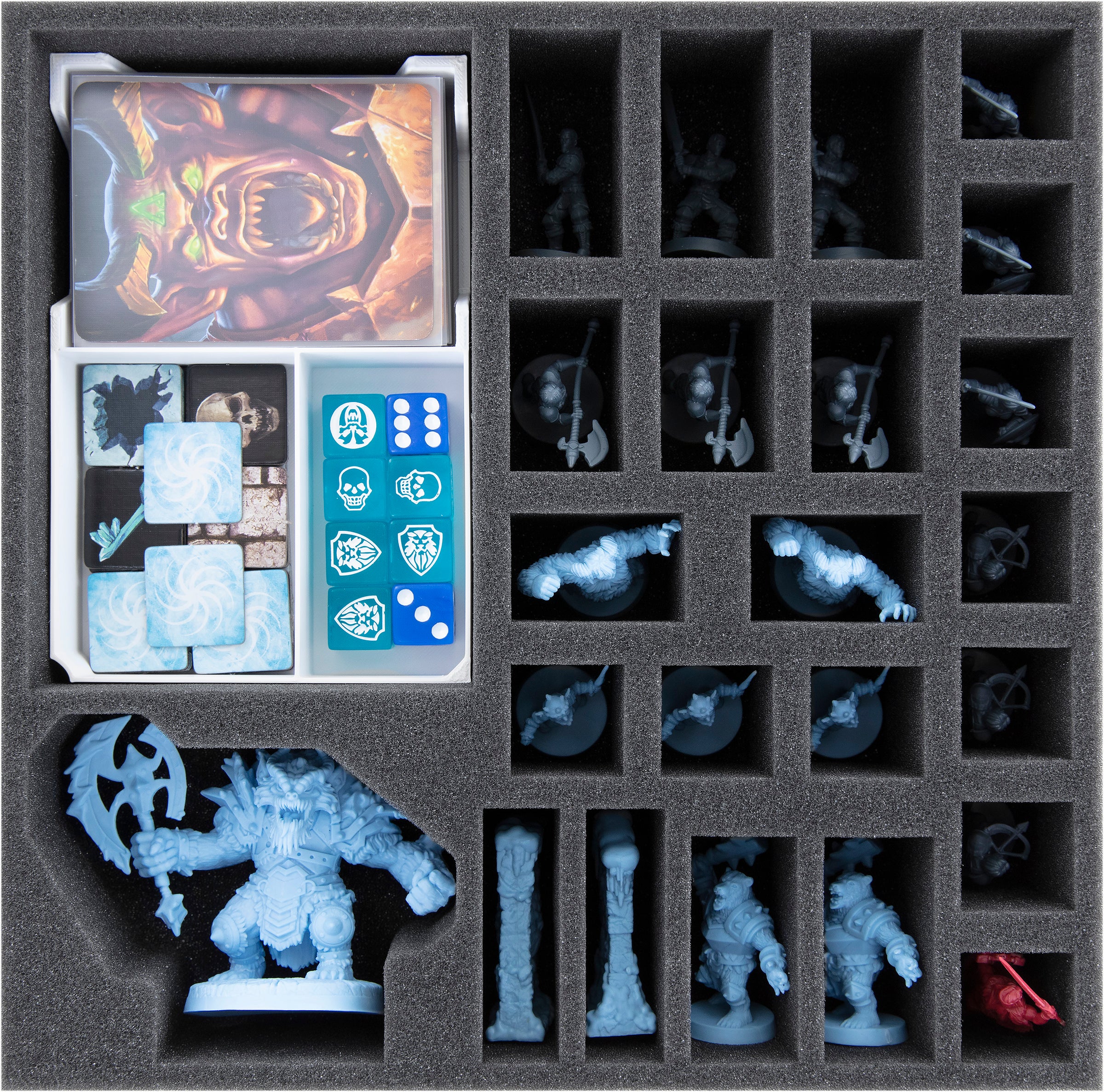 - 1 Schaumstoffeinlage für 4 Helden- und 18 Monsterminiaturen (HCMFFT060BO)