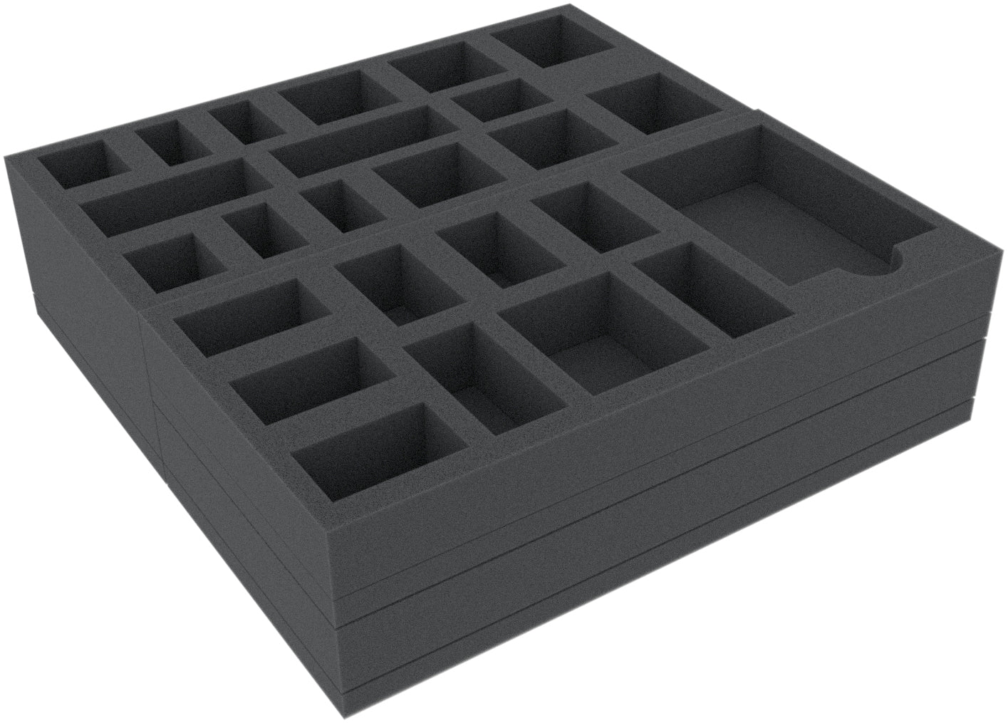 Eingebettet in weichen Schaumstoff, sind deine Miniaturen optimal vor Beschädigungen geschützt. Der passgenaue Zuschnitt verhindert ein Umherrutschen während des Transports. Deine bemalten Figuren sind so vor hässlichen Kratzern und störendem Farbabrieb sicher.