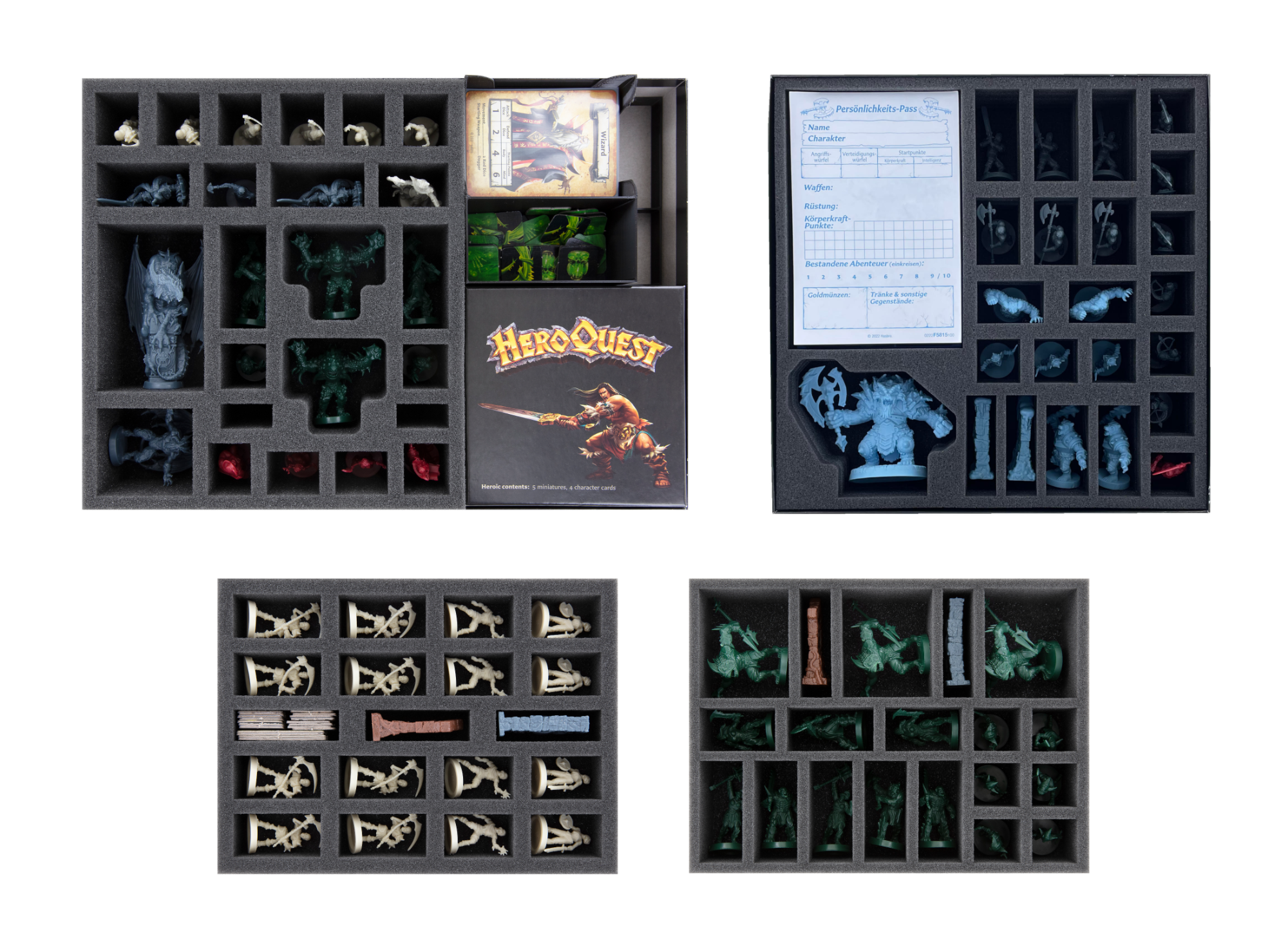 Mit diesem Bundle erhältst du Schaumstoffeinlagen sowie Karten- und Tokenhalter passend für diese 4 HeroQuest (2021) Brettspielkartons: