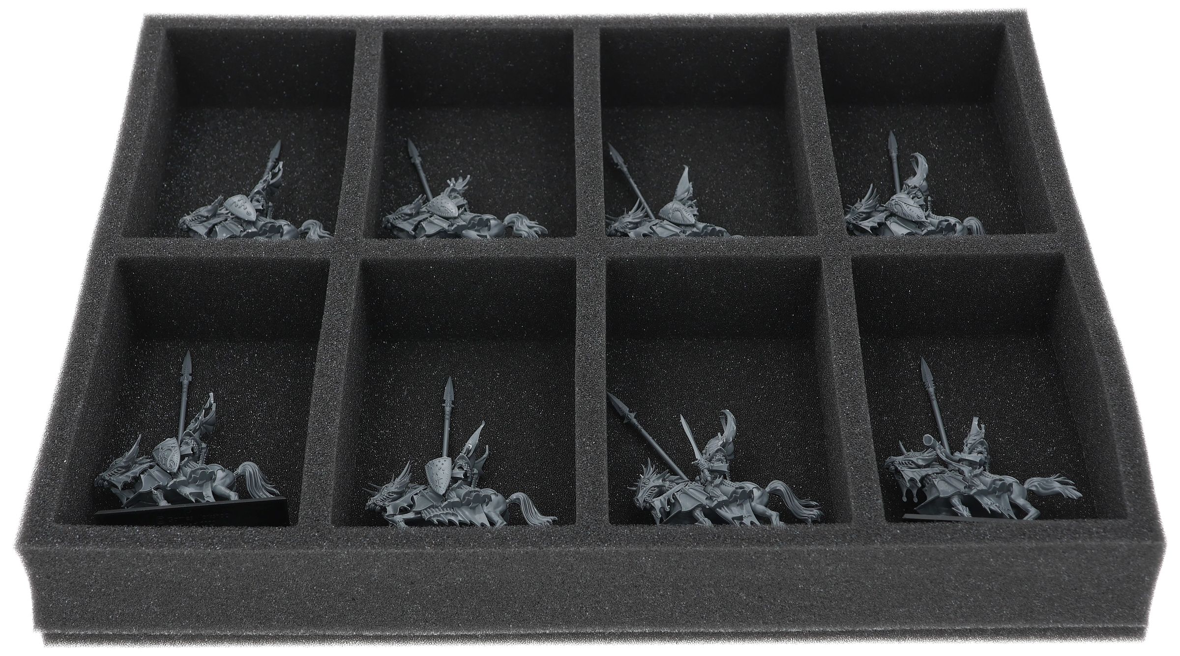 Auf dieser Feldherr Schaumstoffeinlage hast du Platz für bis zu 8 Miniaturen deiner Armee. Das Insert eignet sich zum Beispiel besonders gut zum Aufbewahren der Drachenprinzen von Caledor,Silberhelme und Modellen mit ähnlichen Abmessungen.