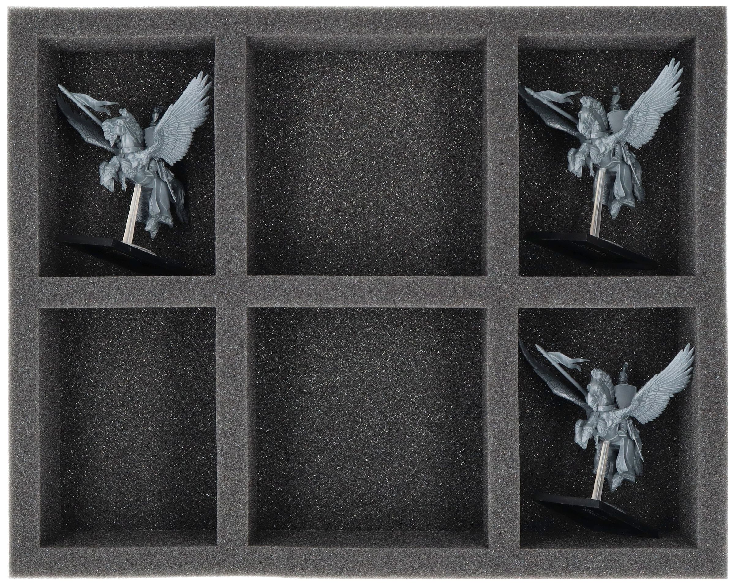 Auf dieser Feldherr Schaumstoffeinlage hast du Platz für bis zu 6 Miniaturen deiner Armee. Das Insert eignet sich zum Beispiel besonders gut zum Aufbewahren der Pegasusritter und Modellen mit ähnlichen Abmessungen.