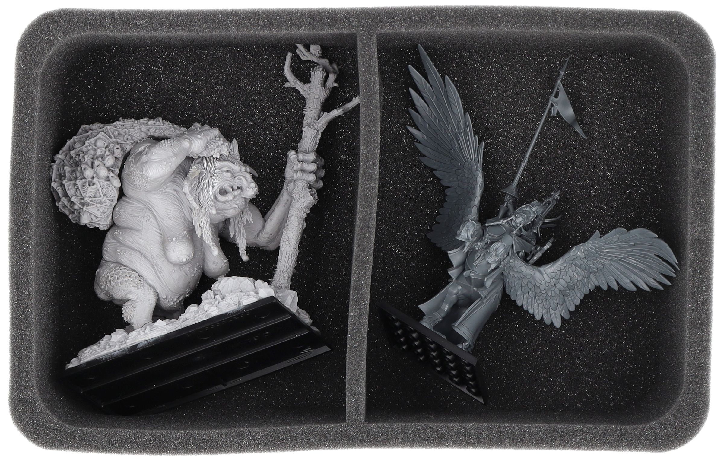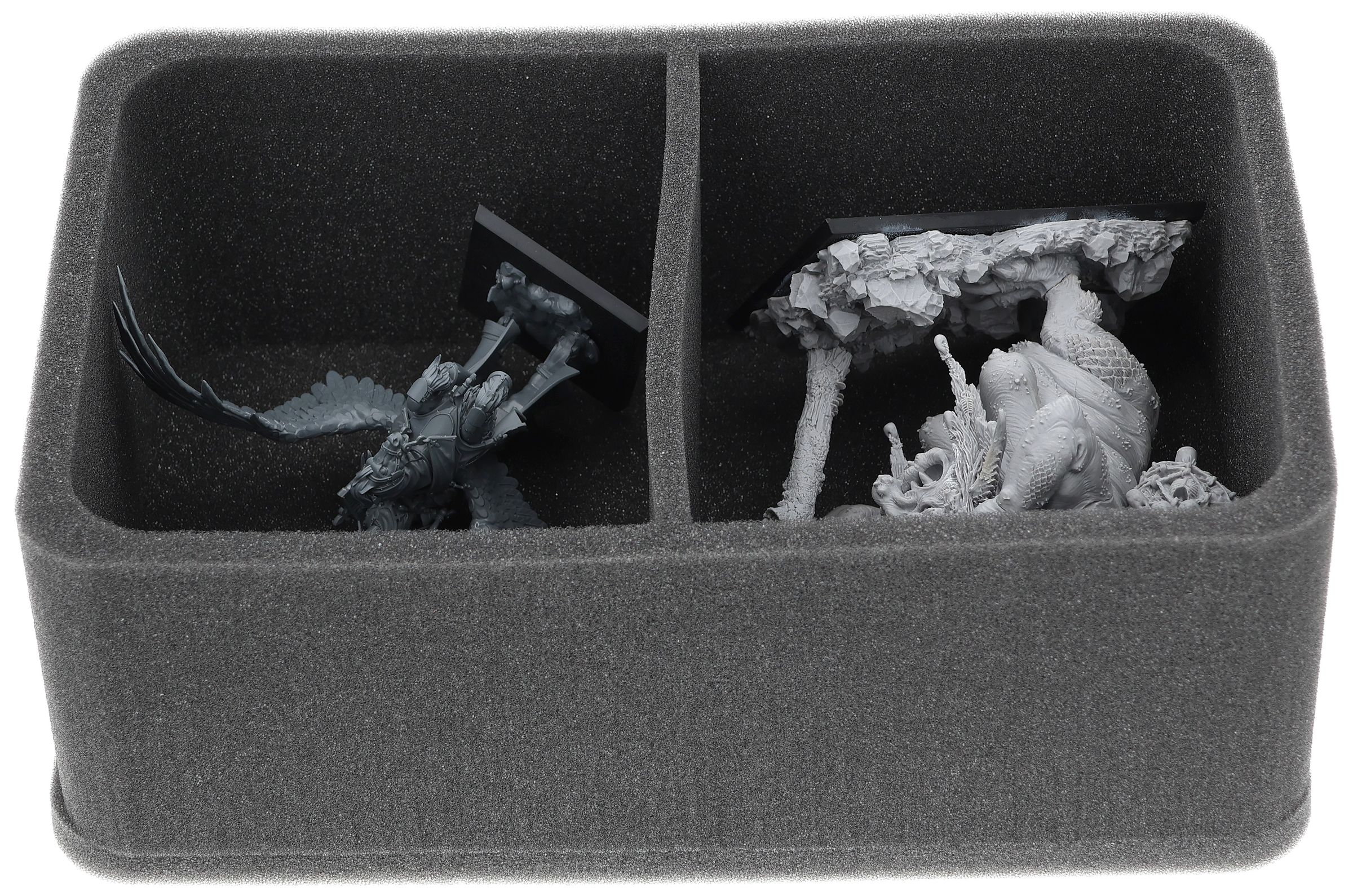 Auf dieser Feldherr Schaumstoffeinlage hast du Platz für bis zu 2 Miniaturen deiner Armee. Das Insert eignet sich zum Beispiel besonders gut zum Aufbewahren des Fürst auf Königpegasus und Modellen mit ähnlichen Abmessungen.