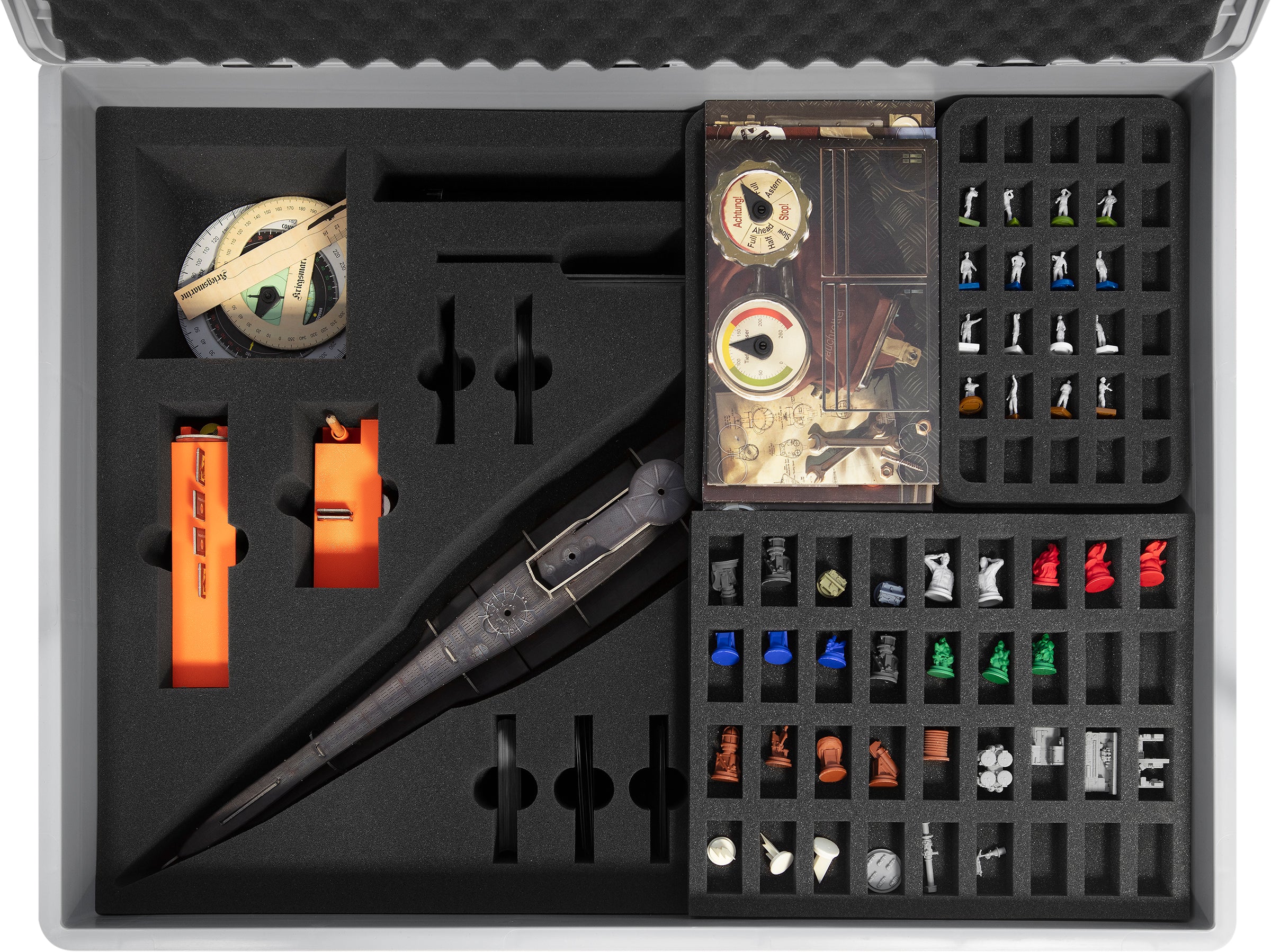 Mit diesem Feldherr Deluxe-Set, durchdacht und maßgeschneidert für „U-BOOT Das Brettspiel“, bekommst du genau die Unterstützung, die du für das Gelingen der nächsten Missionen brauchst.