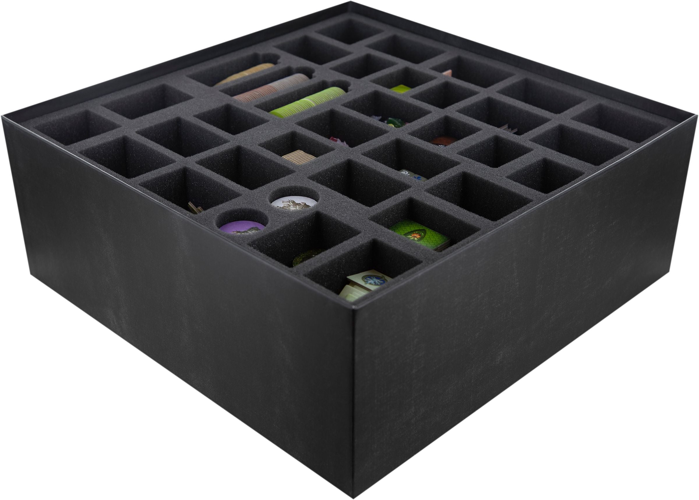 - Geeignet für alle 12 Miniaturen, (gesleevten) Karten, Spielplanteile sowie alle Plättchen und Würfel