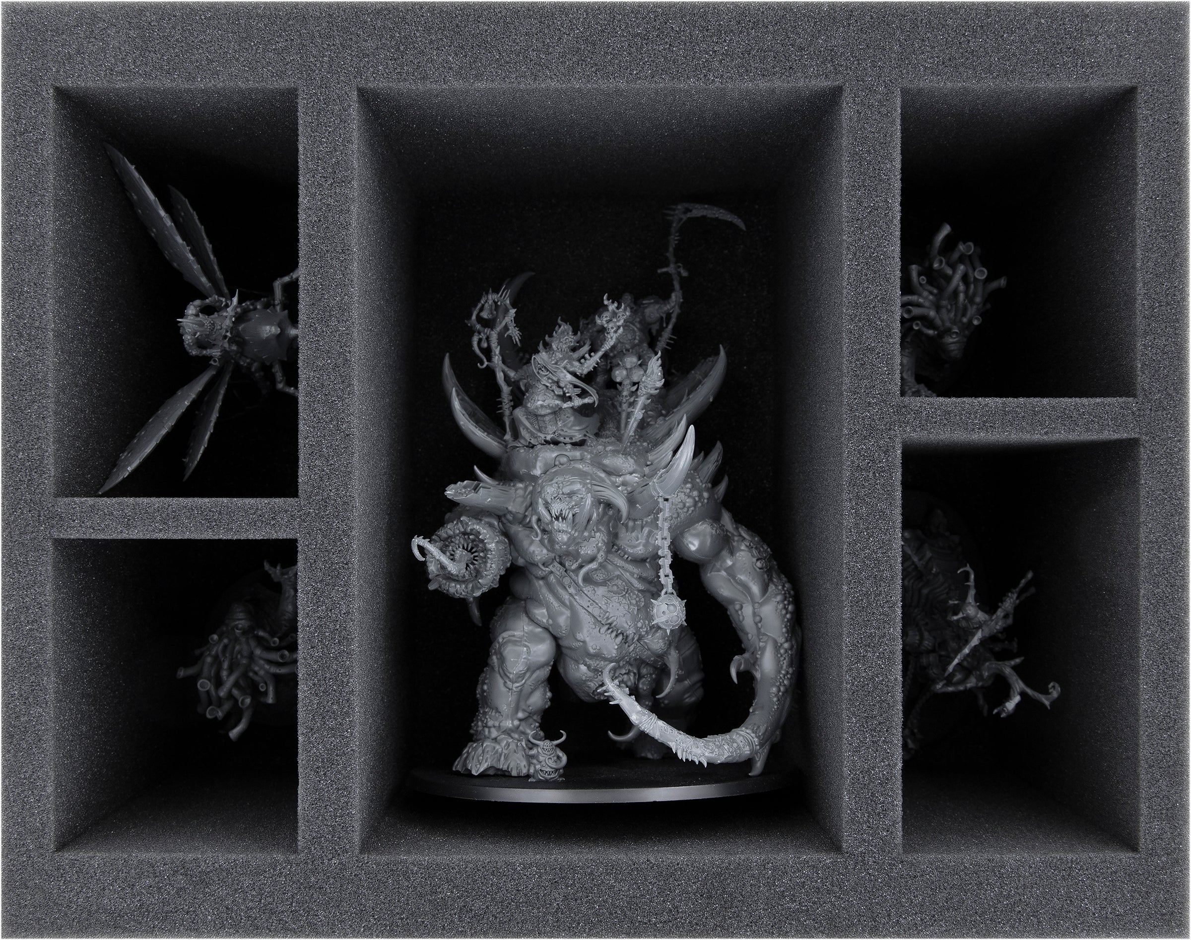 • 1 Full-Size Schaumstoffeinlage mit fünf Fächern für The Glottkin, Harbinger of Decay, Epidemius, Beast of Nurgle oder Modelle ähnlicher Abmessungen (FS140A005)