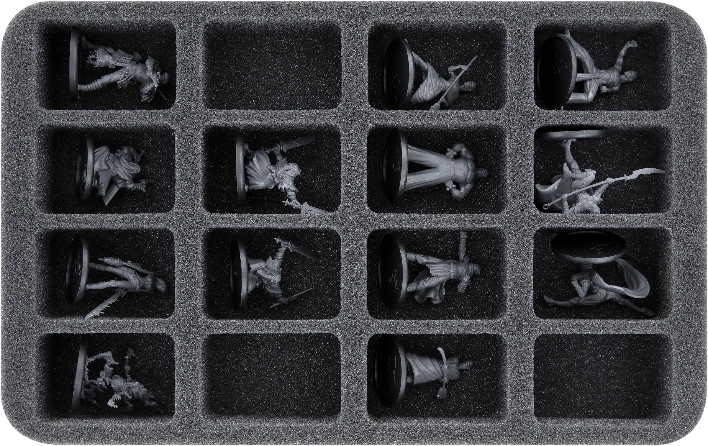 • 1 Half-Size-Schaumstoffeinlage mit 16 Fächern für Miniaturen auf 30 mm Base wie die Figuren aus der ShenLong Core Box oder Sonnia Core Box und Miniaturen mit ähnlichen Abmessungen (HS040BF05BO)